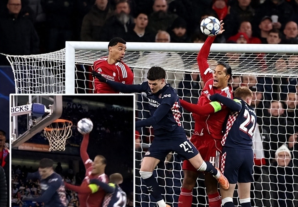 身经百战的范迪克,面对埃因霍温的定位球传中,竟然高举右手去挡住皮球,动作形同篮球“扣篮式”拍打皮球,就连利物浦两大昔日名宿杰拉德(粤语译名:谢拉特)和麦克马纳曼都看不过眼。麦克马纳曼表示:“这球12码点球没得说,只有1个人可以说知道这一刻我有多紧张吗,而这个人就是他自己”。杰拉德也认同:“对手的动作不足以让他有这样的反应,这个球12码点球太明显”。