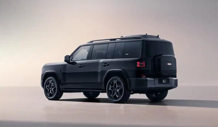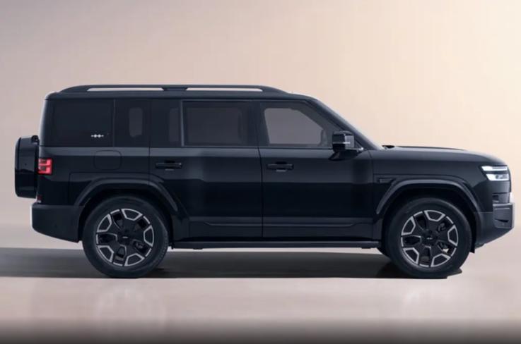 车身侧面的设计有点讲究,车身腰线以水平面的角度进行凹折处理,突出了前后轮拱一块的型面变化,同时C柱区域延长,后方形玻璃窗点缀方程豹LOGO,进一步丰富了气势上的力量感。就这一块的设计来说,如果不是线条比例的加长感较为明显,很可能会让人误以为是“豹5加长版”。说到尺寸,新车长宽高来到了4999x1995x1865mm,轴距2920mm,和豹8对比,轴距两车保持一致,车长短了196mm,车宽缩短1mm(可以忽略不计),车高降低40mm。在车身通过性方面,新车的硬件参数也回归常规水平,接近角24度,离去角25度,车内采用5座布局。