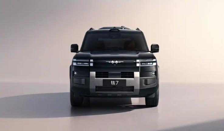 因为钛7整车采用承载式车身设计,所以本质上与豹5、豹8有着市场定位的差别,且在驾驶体感层面也会或多或少存在差异。外形上,钛7并没有另辟蹊径,开发一条“野路子”,而是沿着豹5、豹8成熟的设计路线“摸着石头过河”。整车作为一款中大型城市SUV,继续使用越野车常见的方盒子造型,车头多采用平整流利的线条元素贯穿延展,双L型日行灯叠加在一起,内部集成发光透镜,科技感知突出。为了拔高车头的视觉冲击力,新车沿用宽体包围设计,前包围中部配置一块“H”状银色护板,展现了高大威猛的硬派越野气质。