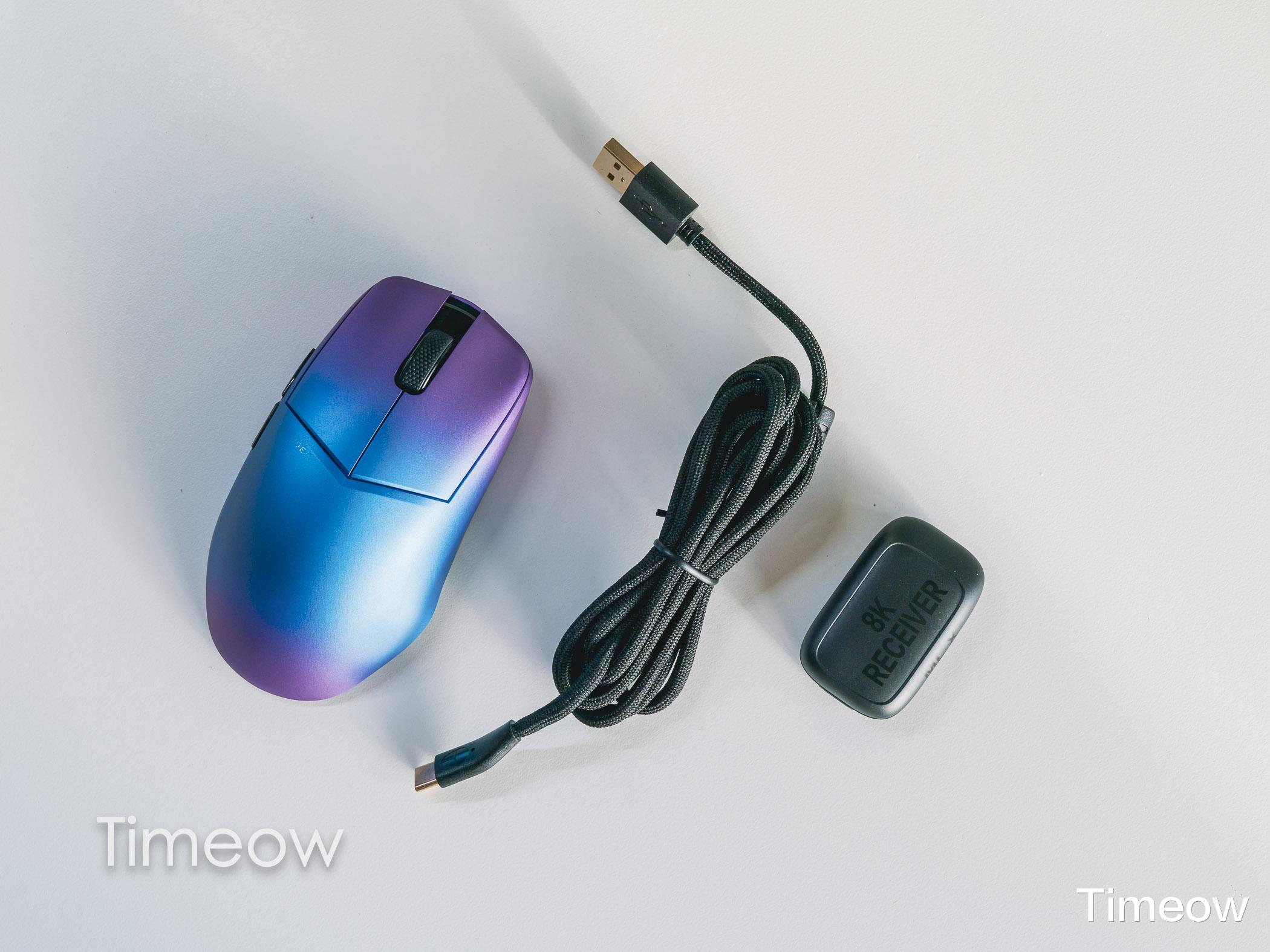 配件方面,它附带的线缆软得像面条一样,插上秒变有线模式,边充边玩无感切换。而且充满电后,在1K模式下续航100小时,8K模式下续航26小时,在顶级电竞鼠标领域里表现还不错。