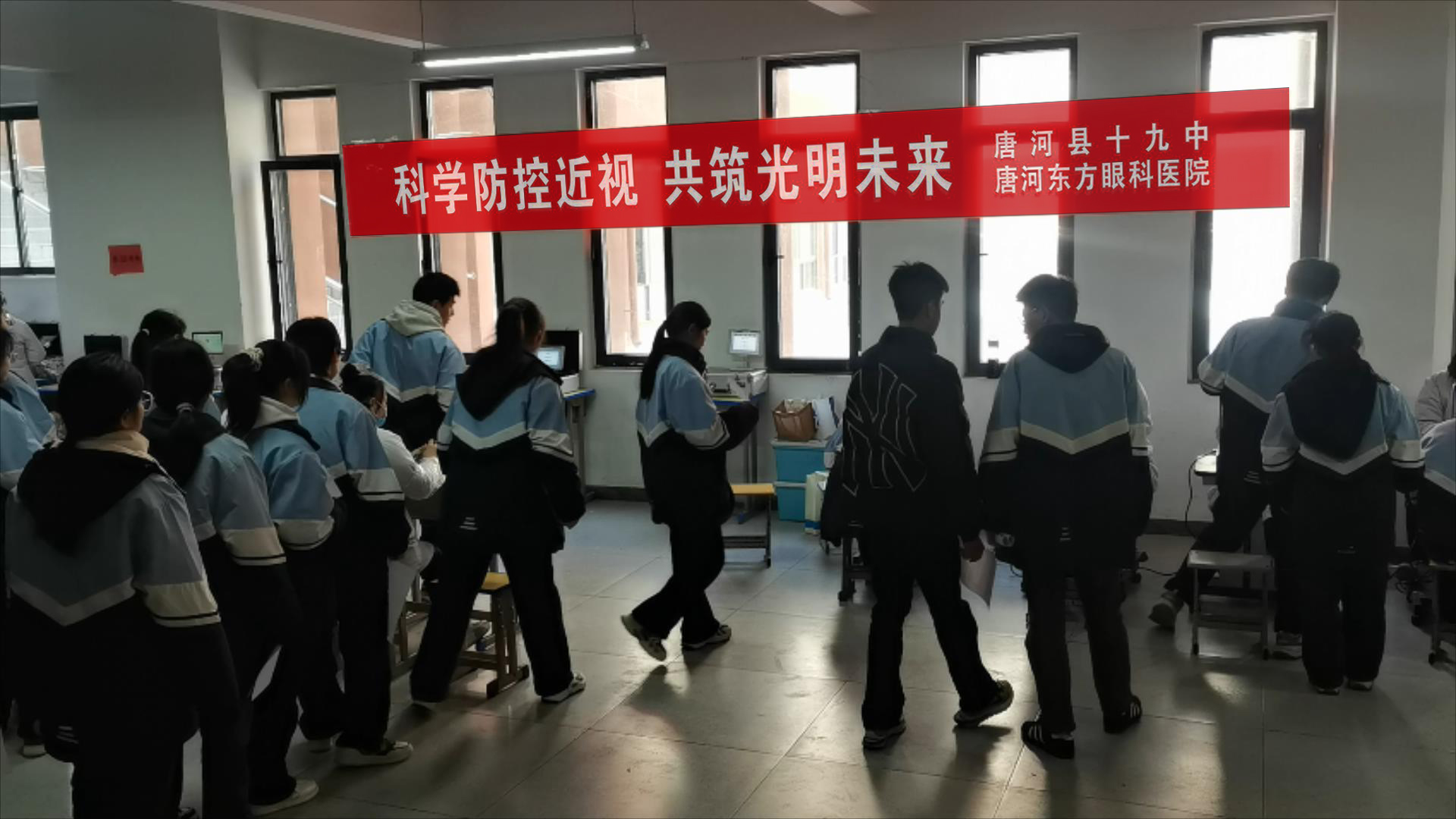 2025年3月是第十个全国近视防控宣传教育月。为积极响应国家关于加强青少年视力健康工作的号召,3月17日至18日,唐河县第十九高级中学联合唐河东方眼科医院开展"守护光明未来"校园公益活动,为全校学生提供免费视力筛查及近视防控知识科普,以行动践行"健康第一"的教育理念。