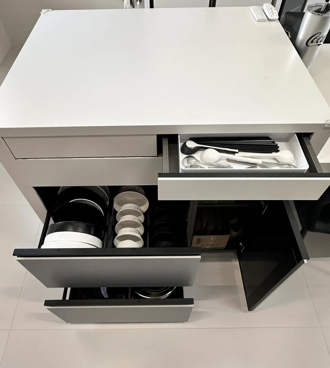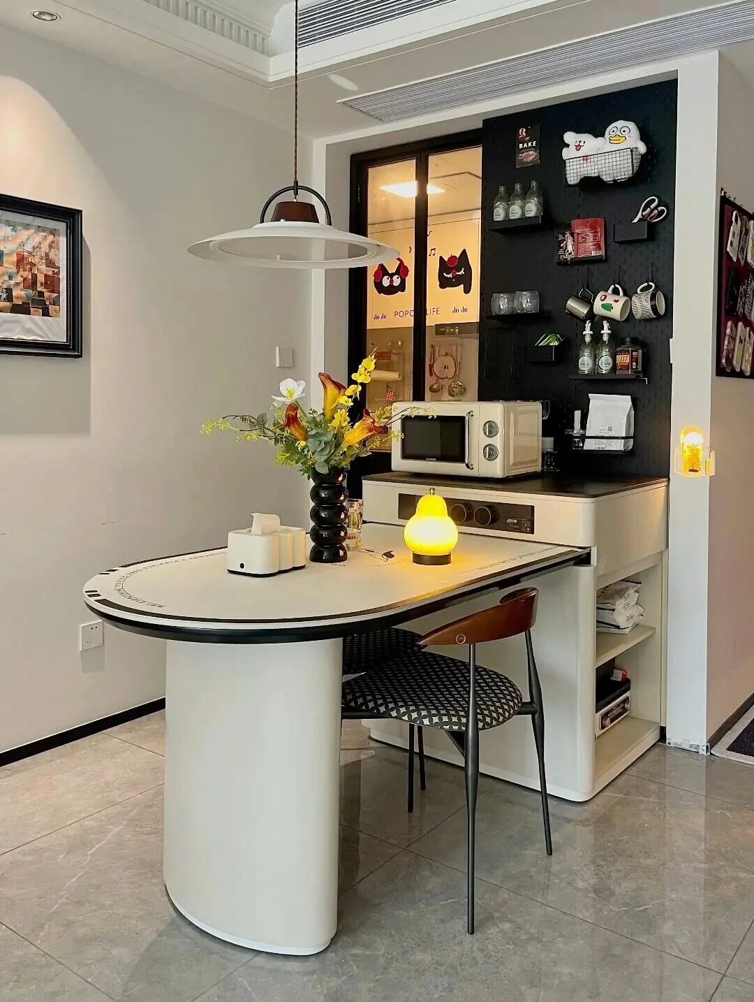 自带电源的设计,平时吃火锅、用微波炉、榨汁机,都不用额外接线,特别便捷,闲暇的时候,还能当成吧台,喝杯小酒、泡杯茶,氛围感直接拉满。