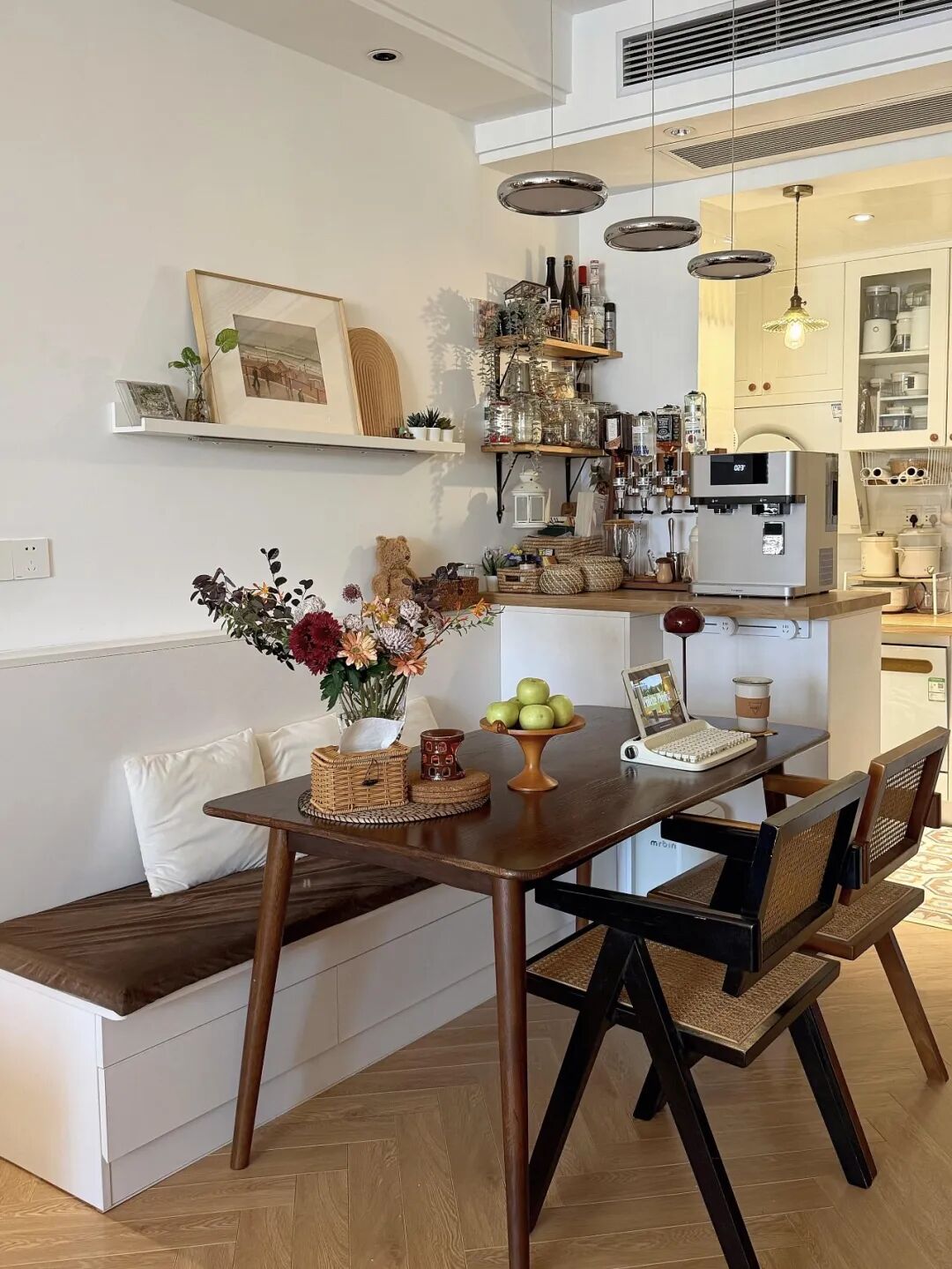 现在大多数家庭都是小两居室、三居室,根本没有专门的大餐厅,顶多就是餐客一体的小空间。