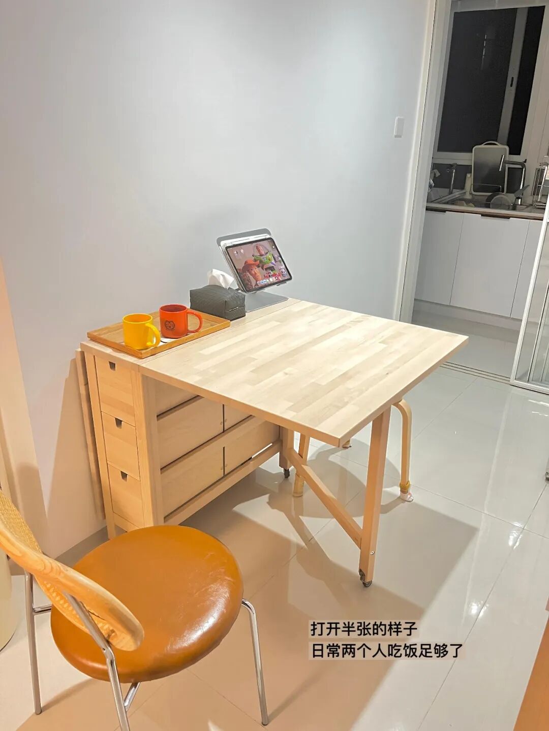 除了卡座和岛台,现在年轻人装修,还喜欢用折叠餐桌。