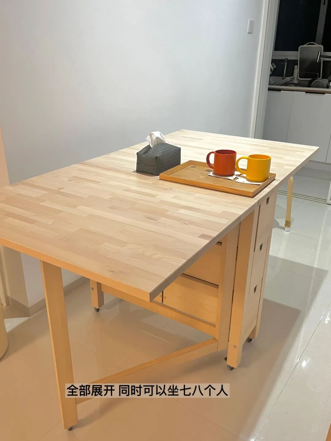 全展开,就是一张餐桌,吃饭、聚餐都够用。