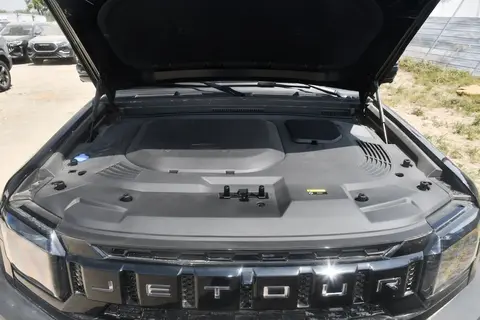 捷途家族系列车型在外观的设计上都比较有设计感,设计师的审美还是在线的,方方正正的车头看着就帅气,两边的LED大灯该有的功能都没有缺席,四点式的日行灯很好看,中间的捷途英文LOGO可以发光,增强了辨识度。下半部分用了大面积的护板,接近角也很大,上坡十分容易。来到侧面,没有复杂的设计,贯穿式的腰线修饰了车身的比例,轮毂是标配的19英寸,造型也很运动。前排的双层夹胶玻璃对控制噪音有很大作用,车窗边框熏黑增强运动感,车顶上有行李架,还有可以打开的全景天窗,提升户外的体验。尾部这里的扰流板内侧有高位刹车灯,两边的尾灯竖向设计,内部光源精致,尾门上有一个非全尺寸备胎,外面还有备胎罩,上下下宽的尾部设计立体感很强,580L的后备箱容量,可以放下多个行李箱、小推车,而且捷途山海T2还有很大的改装空间,就看大家怎么自由发挥了。