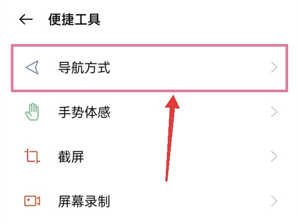 1、首先打开手机设置页面,点击:便捷工具。2、进入到便捷工具页面后,点击:导航方式。3、进入到导航方式页面后,把右侧按钮