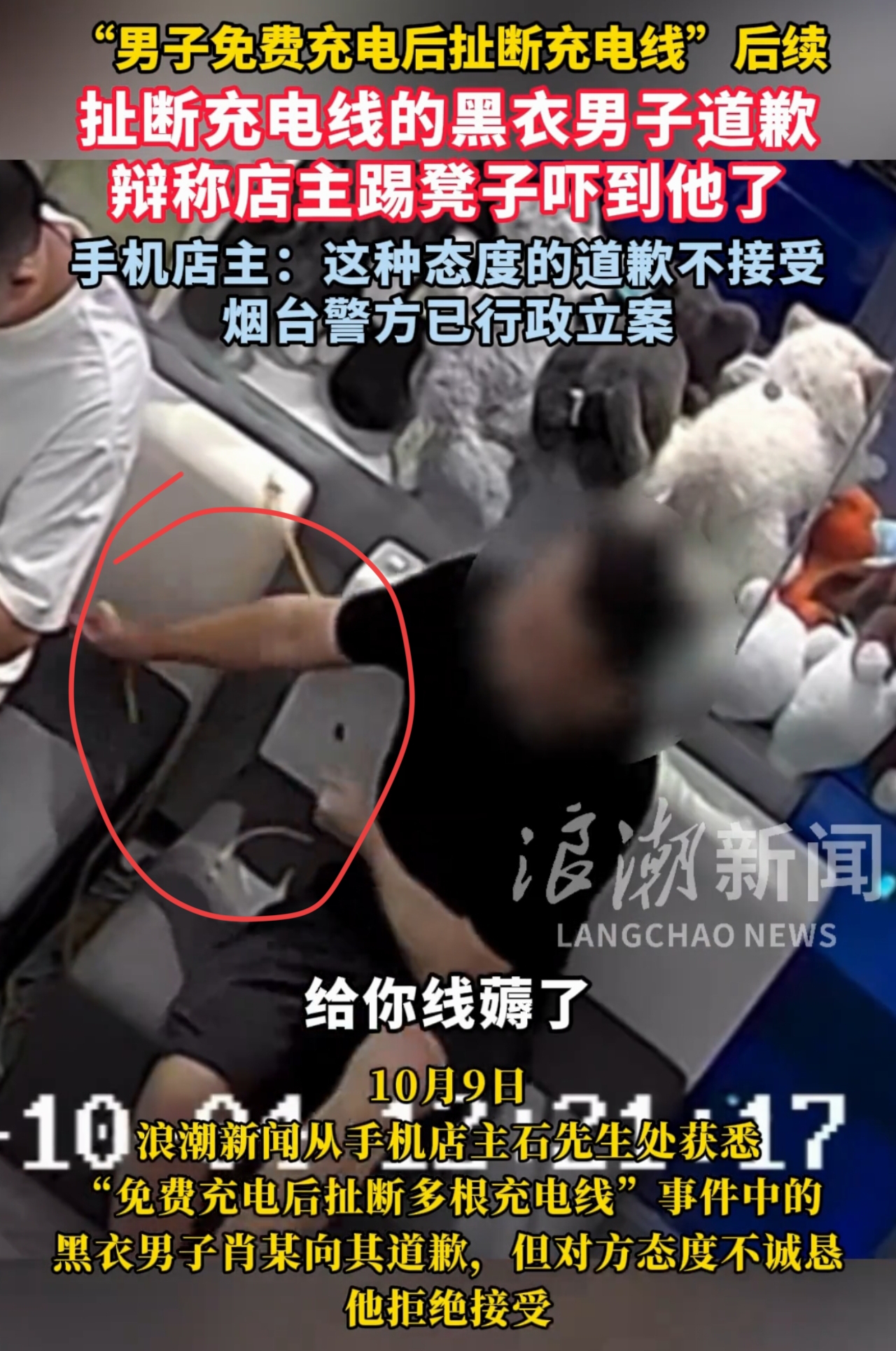两男两女四名游客借充半小时后,黑衣男子临走前故意拽断充电线的动作,不仅扯断了一根数据线,更在后续的拉扯中,将“享受善意却透支善意”的争议推向了新的焦点,当店主因气愤曝光监控维权时,涉事男子竟反过来以“侵犯隐私”为由,要求处理这段未打码的监控视频。
