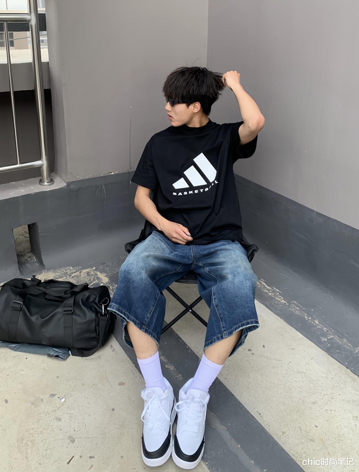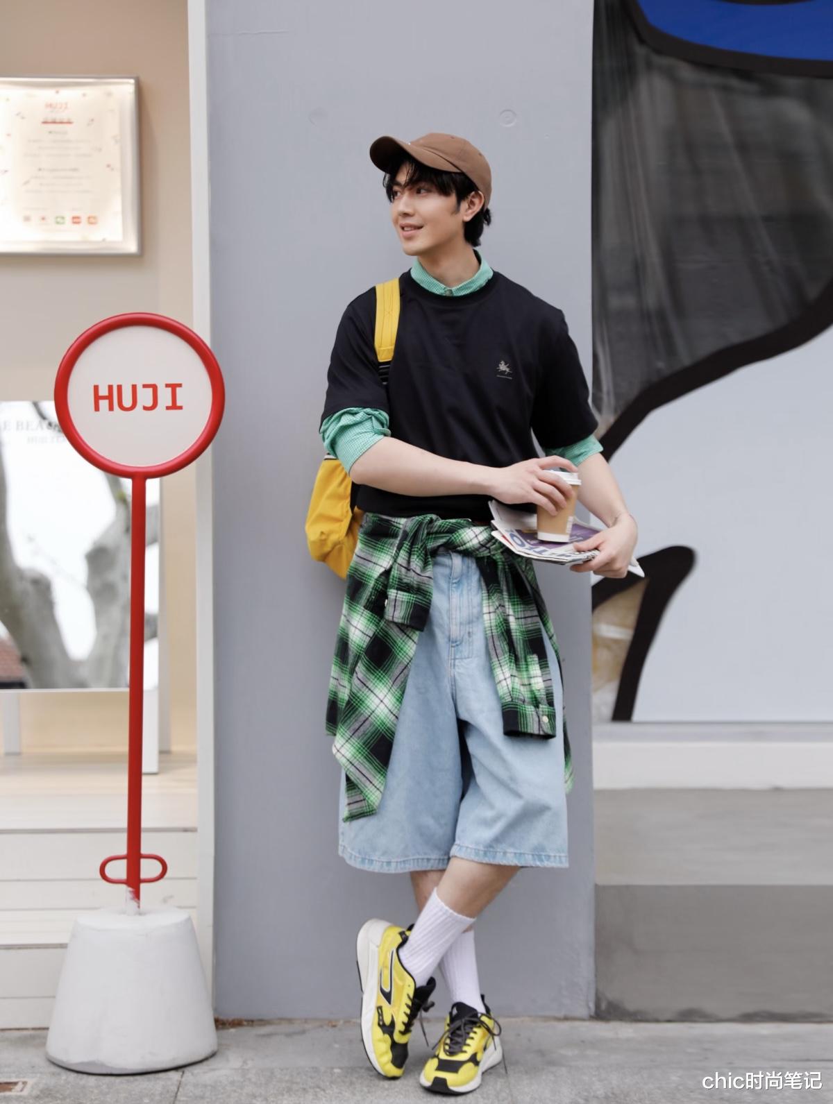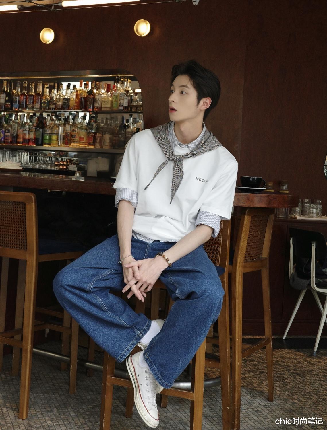 LOOK:基础款T恤+衬衫+五分牛仔裤