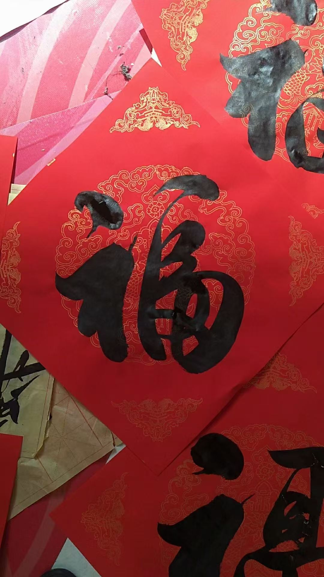 李金宝是中国齐白石艺术研究院吴景山的得意弟子,在师傅的精心指导下,与“福”字结下缘分,也始于对书法的赤诚,成于近乎痴狂的坚守。数十载晨昏不辍,他把案头化作修行之地,将笔墨当作生命知己,练字之勤、用功之深,早已超越寻常爱好者的境界,达到痴迷忘我、扎根传统的境界。为集齐天下知名书体,他遍览碑帖、溯源古意,从甲骨金文的古朴苍拙,到篆隶楷行草的法度流转,从历代名家的经典范式,到民间喜闻乐见的吉祥书风,一一梳理、精研临摹,终以一己之力,熔铸出百种体式、百样风骨的福字,堪称书坛一绝。