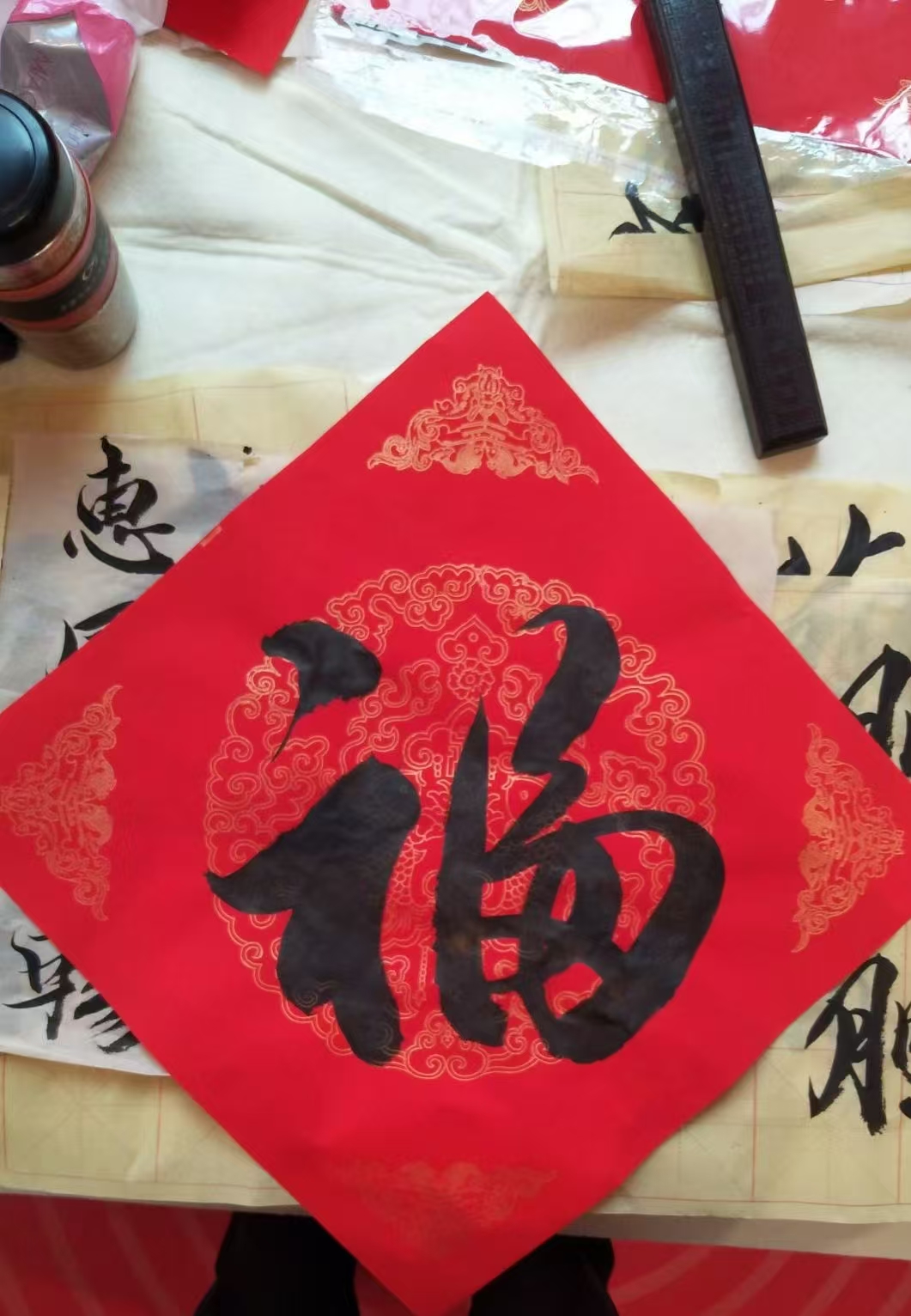 他笔下的百福,绝非简单复刻,而是师古而不泥古,创新而不离宗。在古人笔法、结构、气韵的根基上,融入个人审美与匠心巧思,或端庄厚重、或灵动飘逸、或刚健雄劲、或温婉雅致,一字一姿,一福一韵,既守得住传统笔墨的根脉,又彰显出独属于自己的艺术风格。百福并呈,或规整排布、或错落成章,墨色浓淡相宜,笔锋收放自如,满纸喜气扑面而来,既有文人书法的清雅格调,又有民俗祈福的热烈吉祥,雅俗共赏,适配厅堂、雅室、节庆、礼赠等诸多场合,真正做到了笔墨接地气,福气入人心。