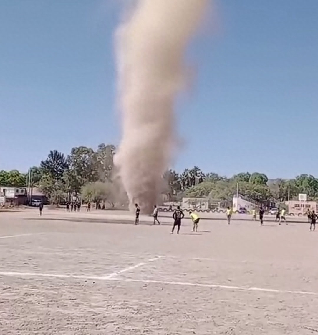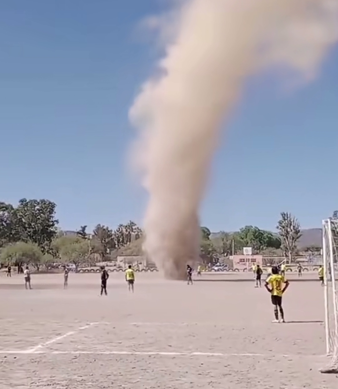 它不是挠过耳边的软风,不是掀动球衣的凉风,它卷着满场黄沙拔地而起,顺着风势扭着腰往天上冲,越滚越粗,越爬越高,像从地里钻出来的黄龙,昂着脑袋撞进晴蓝天空,把漫天沙尘扬成了球场独有的旗帜。