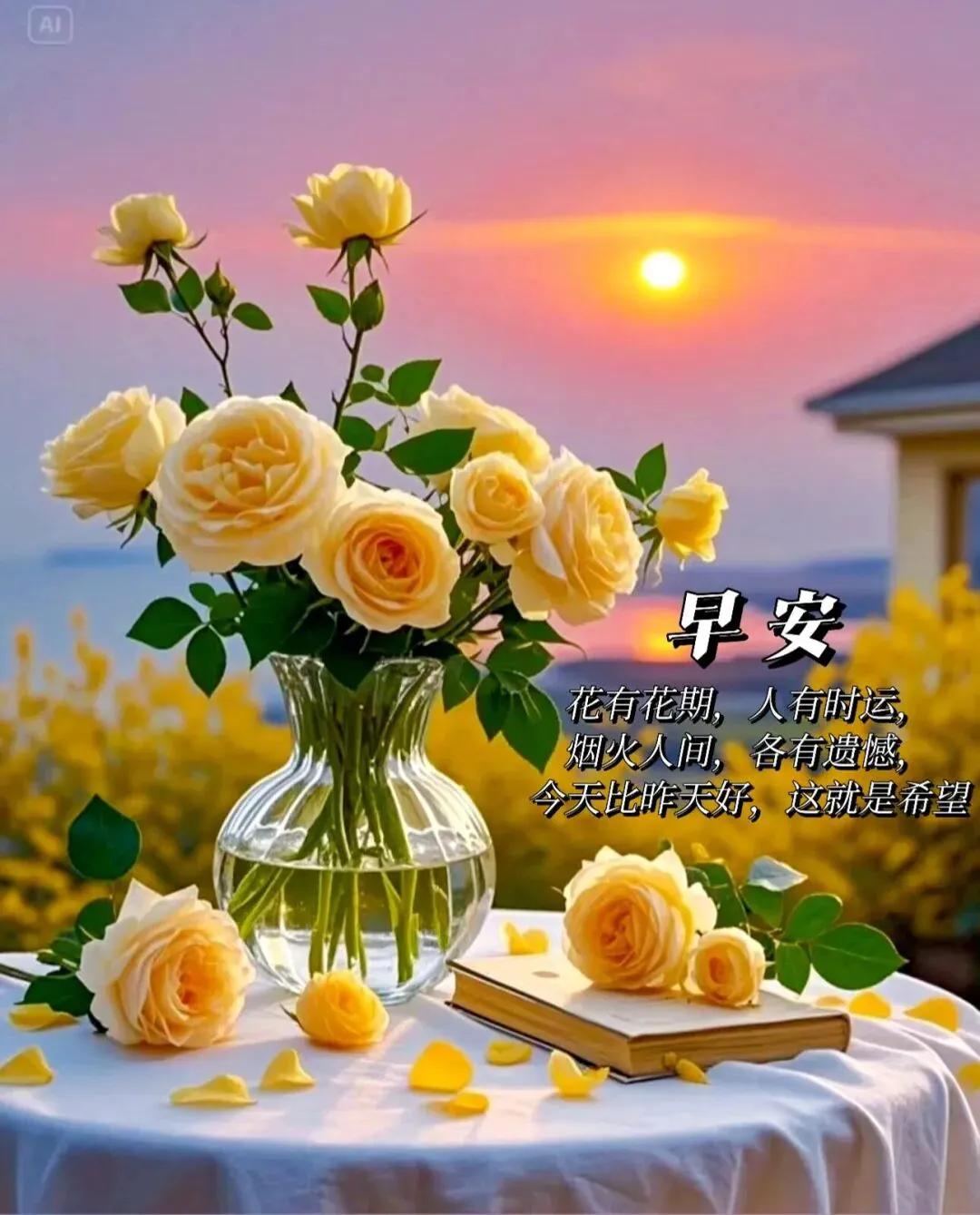早上好,朋友们。人生百年,相逢是缘,每日网见,滋润心田。彼此珍惜,互报平安。感恩缘分,情谊永远。新的一天,踏着晨光向前走,带着暖意出门去。