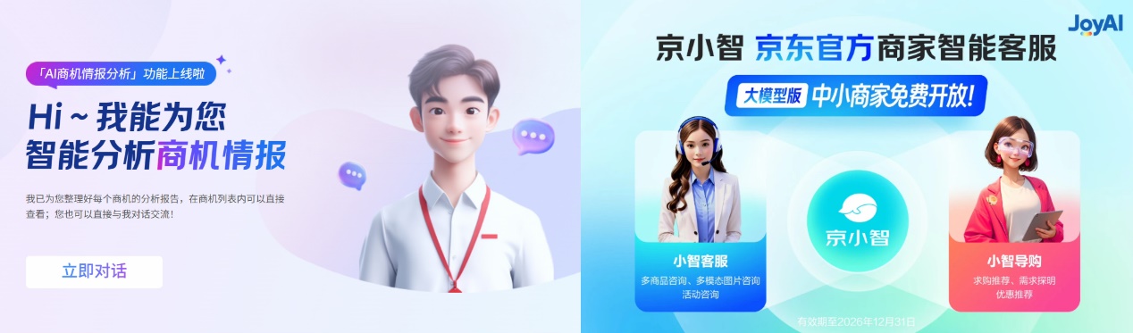 在AI深度赋能实体经济的浪潮下,京东宣布14款“京麦”AI工具全部免费开放,实现经营全链路覆盖。从2025年推出的“AI商机情报工具”助力选品定价,到2026年即将上线的“AI智能打单”与“延迟发货报备”工具打通后端履约,AI能力持续进化。同时,京麦服务市场精选30余款开店必备工具,新商均免费;包括原价6万元的“京小智5.0”客服工具、原价3万元的官方数字人直播工具,新商家最长可免费使用1年。从入驻到商品管理,从营销推广到售后服务,AI技术已深度植入经营全流程,不仅降低了新手商家的门槛,更预计带动整体经营效率提升50%。