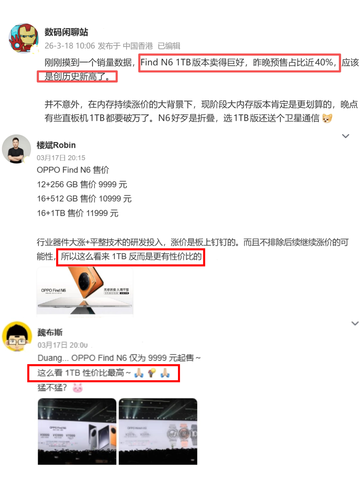 这不,一堆聪明人开始都换手了,还都选1tb版本的,OPPO Find N6这款新发布的国产大折叠1tb版本就卖爆了,店里全是人,1tb版本线上都缺货了,咋搞嘛