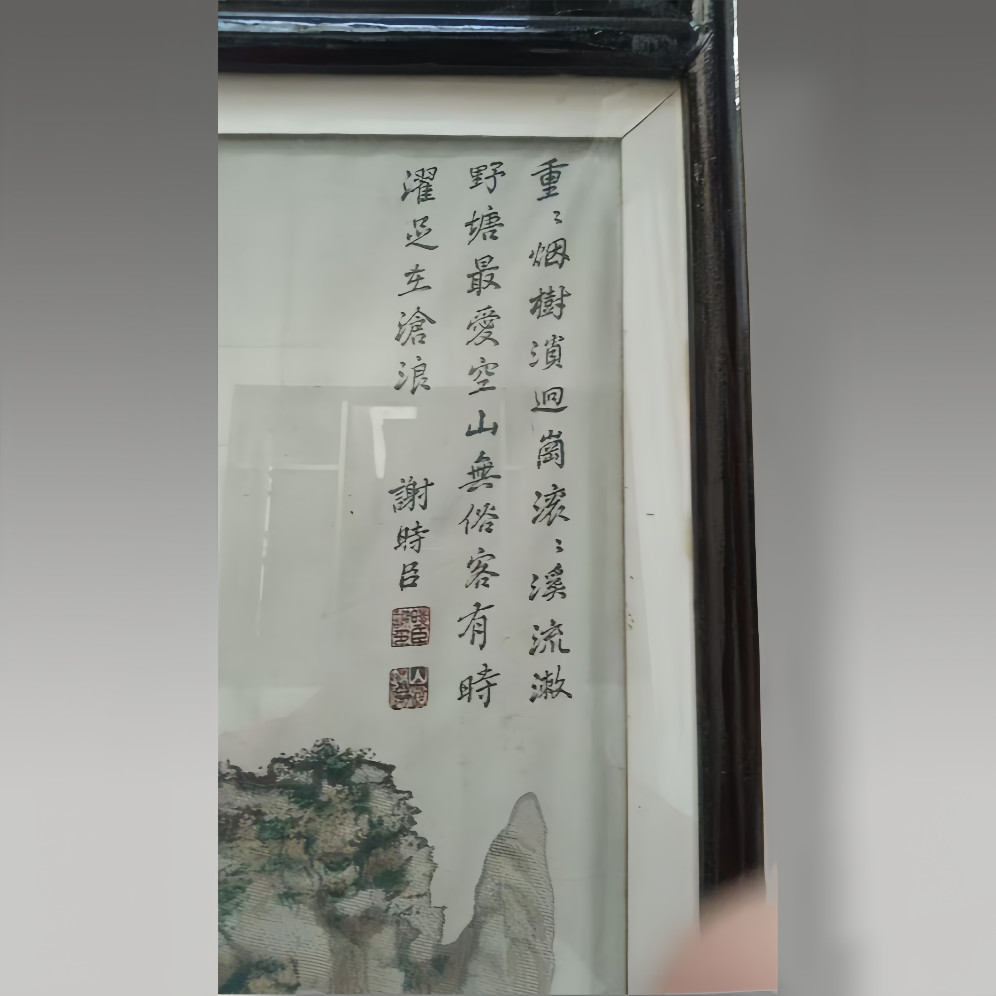 这幅作品以青绿铺展山峦,金墨勾勒水天,层叠峰峦间烟波流转,将千里山河的壮阔与雅致融于方寸之间