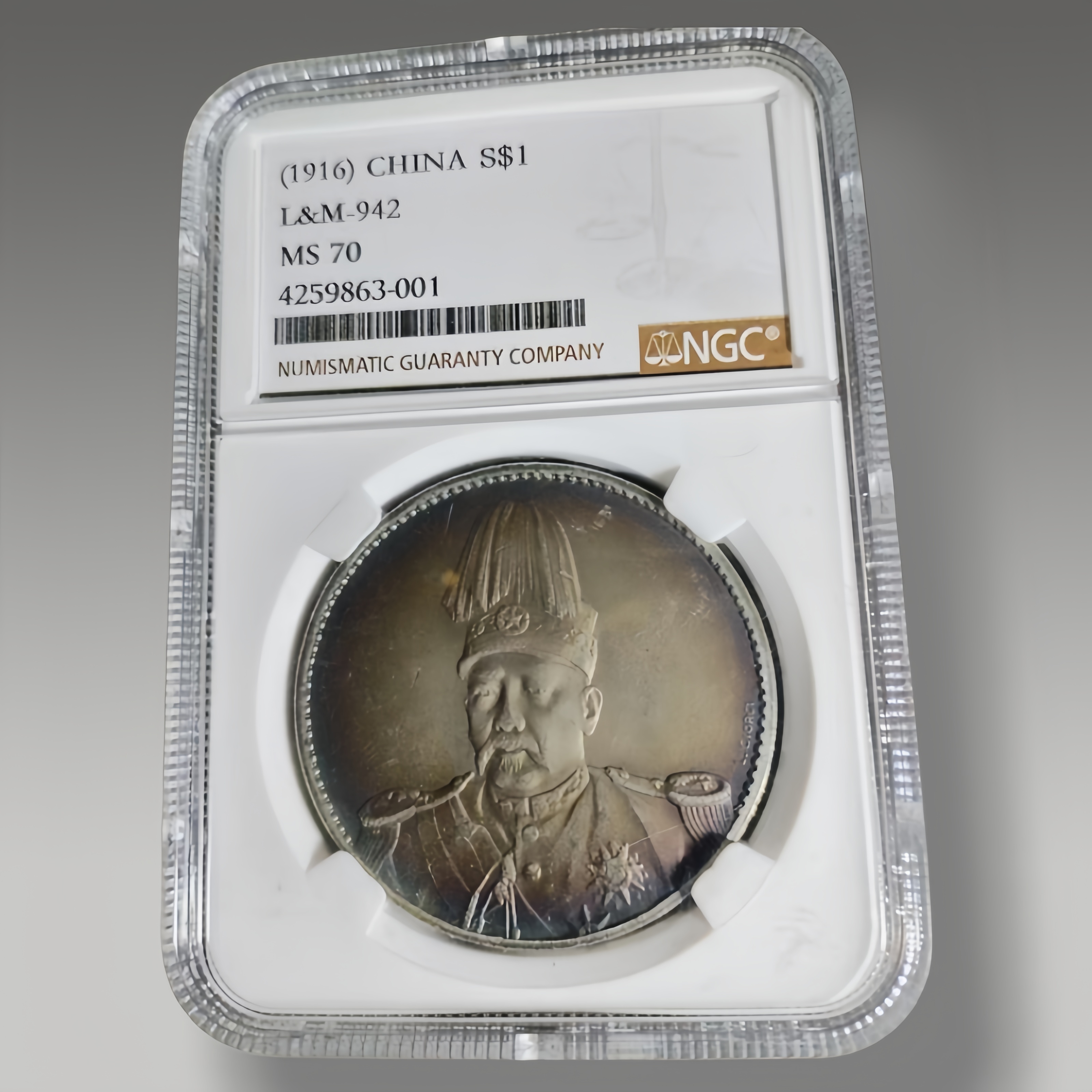 这枚银币,经专业评级封装,币面端庄大气,满汉双文与花卉纹饰清晰,包浆温润