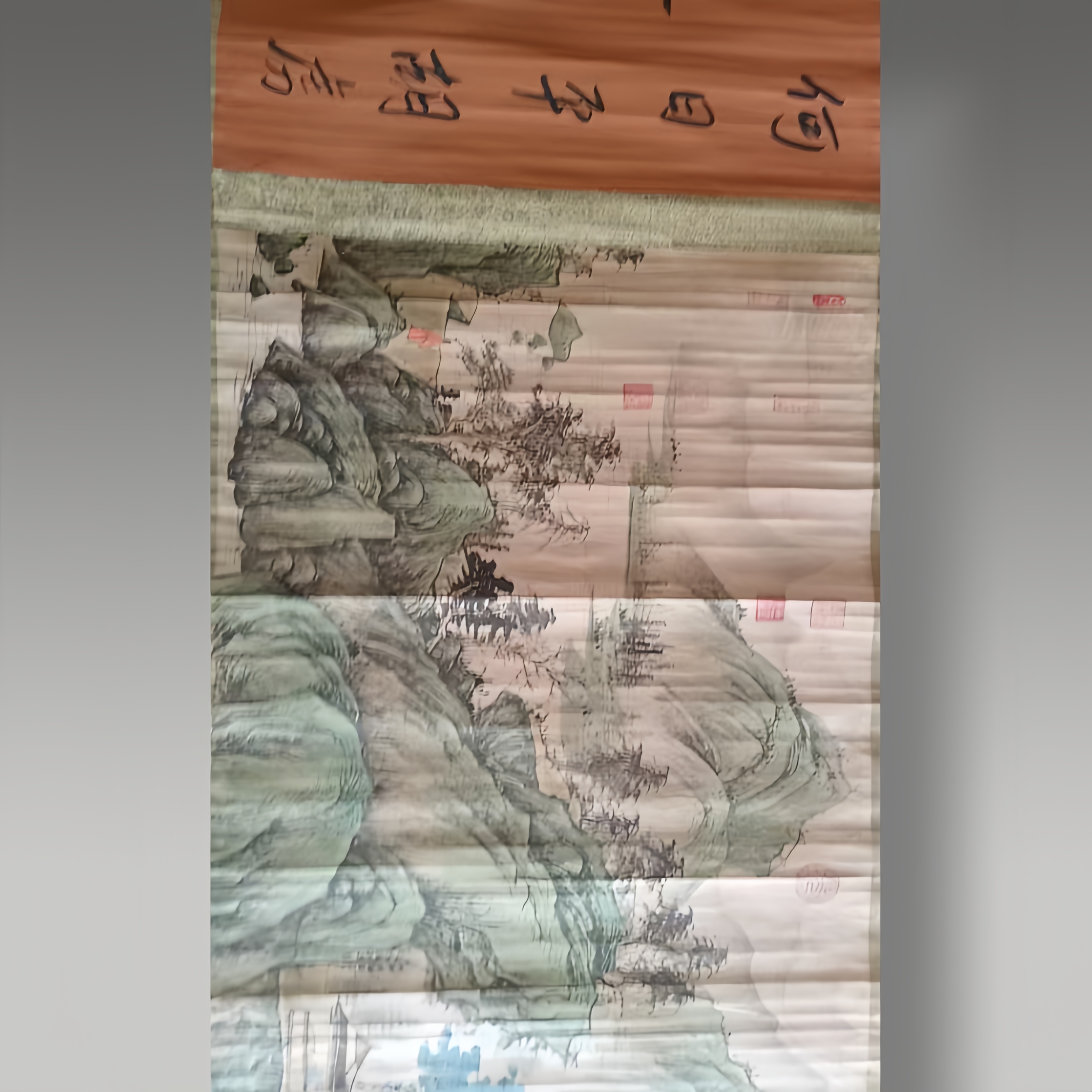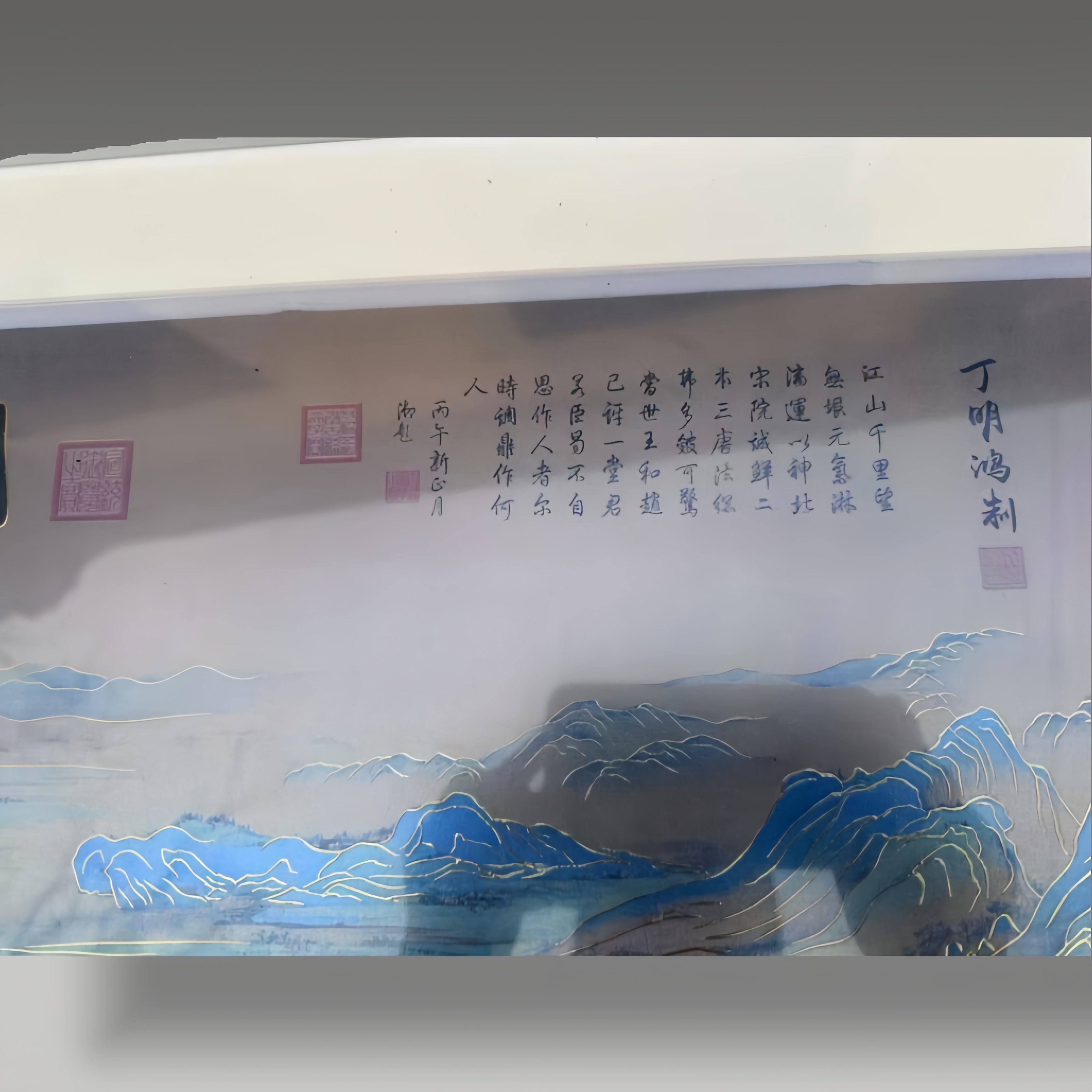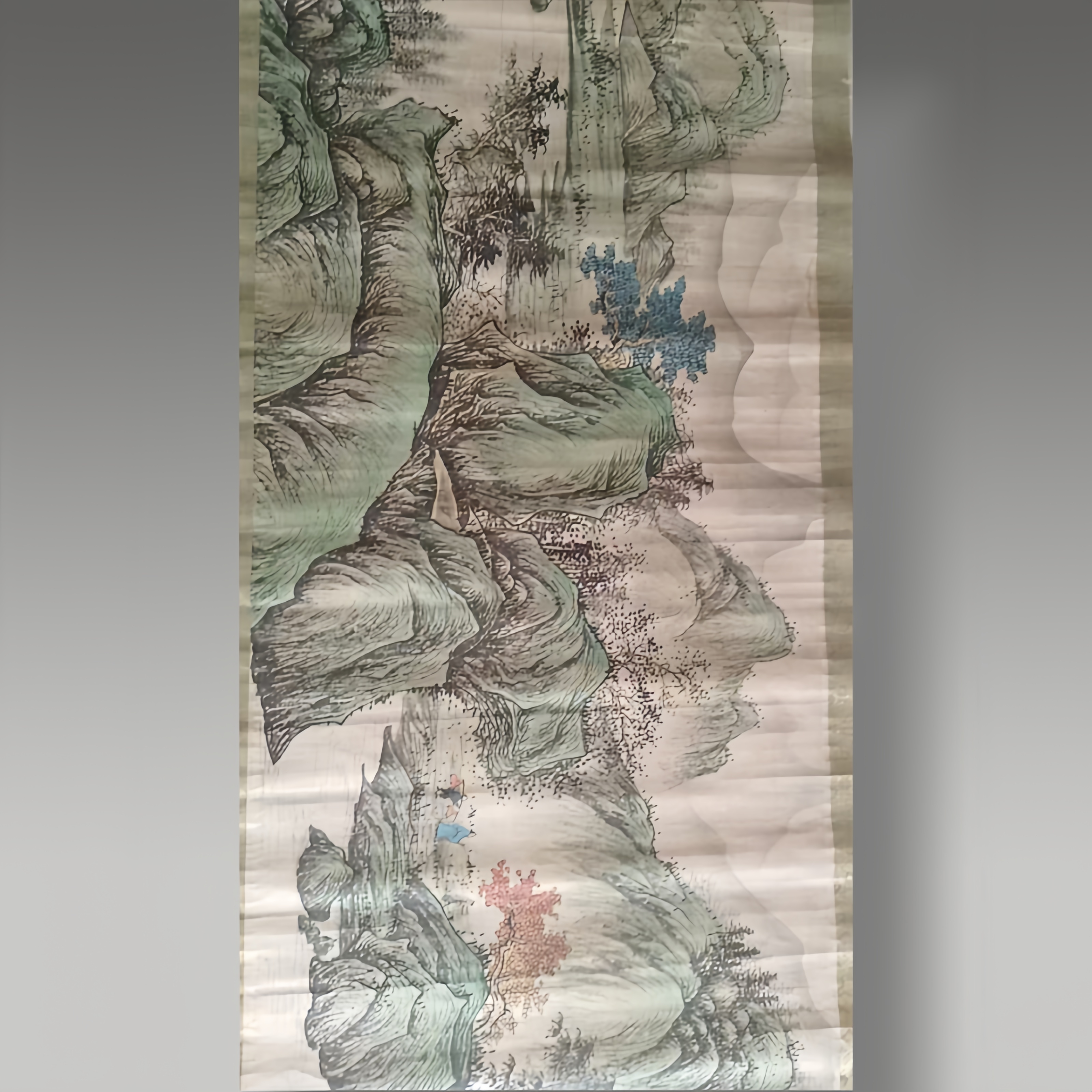 以石青、石绿矿物颜料层层晕染,绘就峰峦起伏、江河浩渺的壮阔江山
