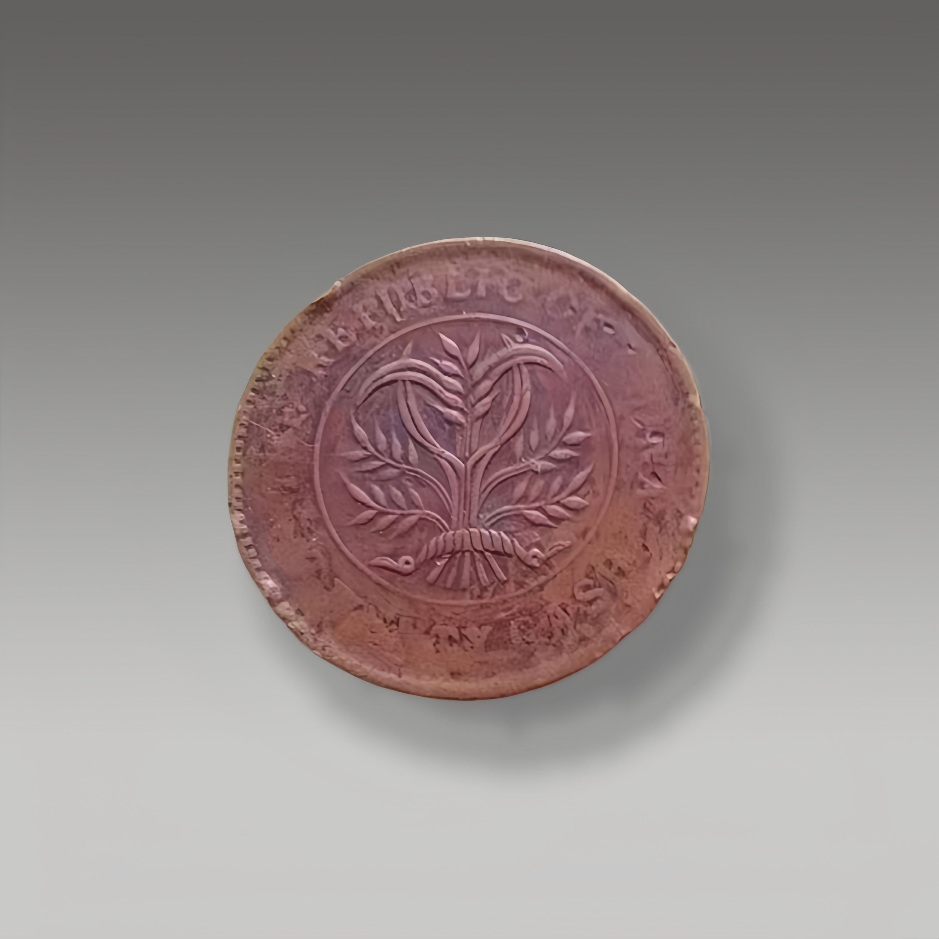 这是一枚双旗铜元背版,币面的嘉禾纹路清晰,枝叶饱满对称,红铜包浆温润自然