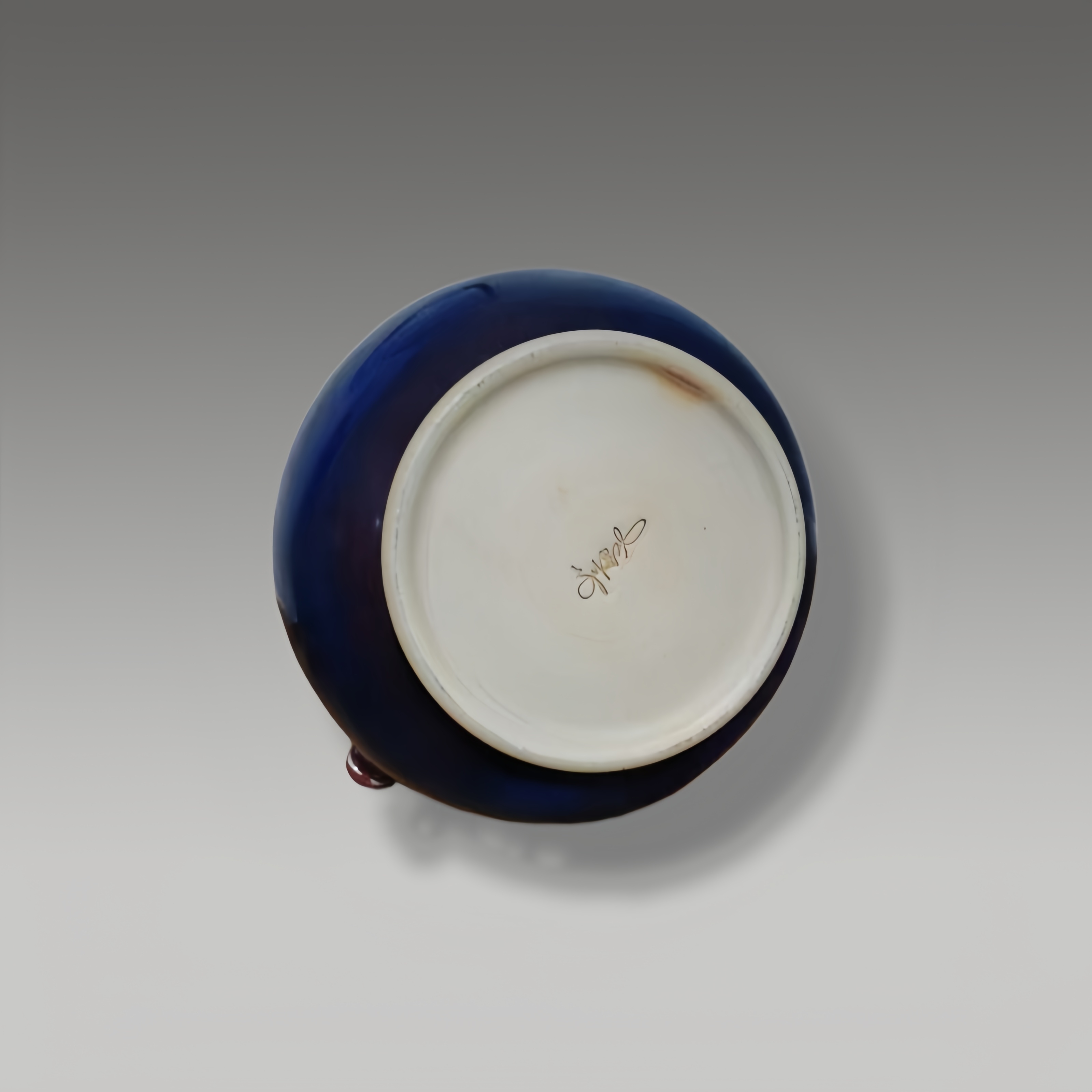 器身釉色交融流转,紫红沉凝如霞,青蓝细碎似星,兽首衔耳精巧灵动