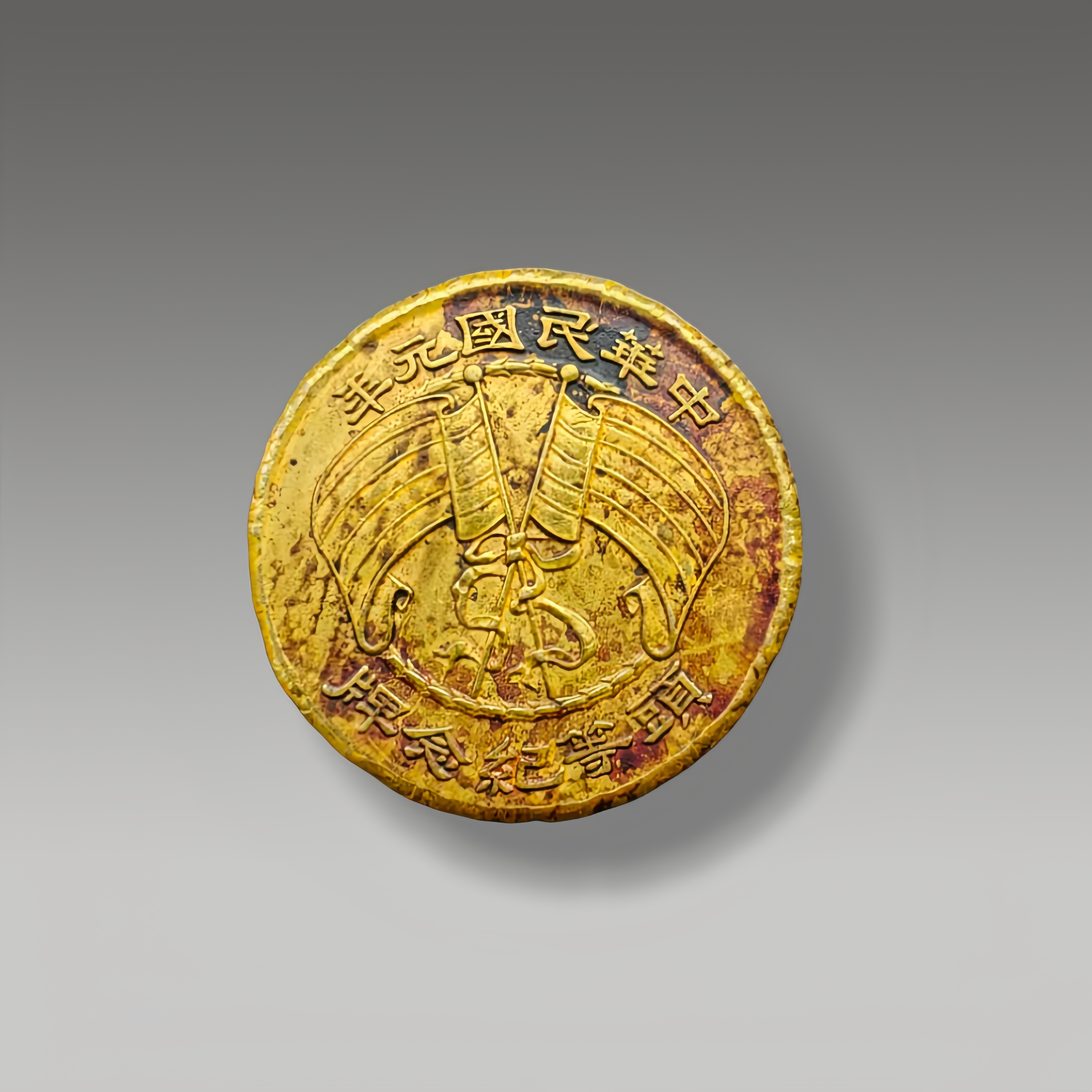 它们包浆温润,一枚镌刻双旗,见证共和肇始;一枚铸有蟠龙纹,承载龙纹规制。铜色沉郁