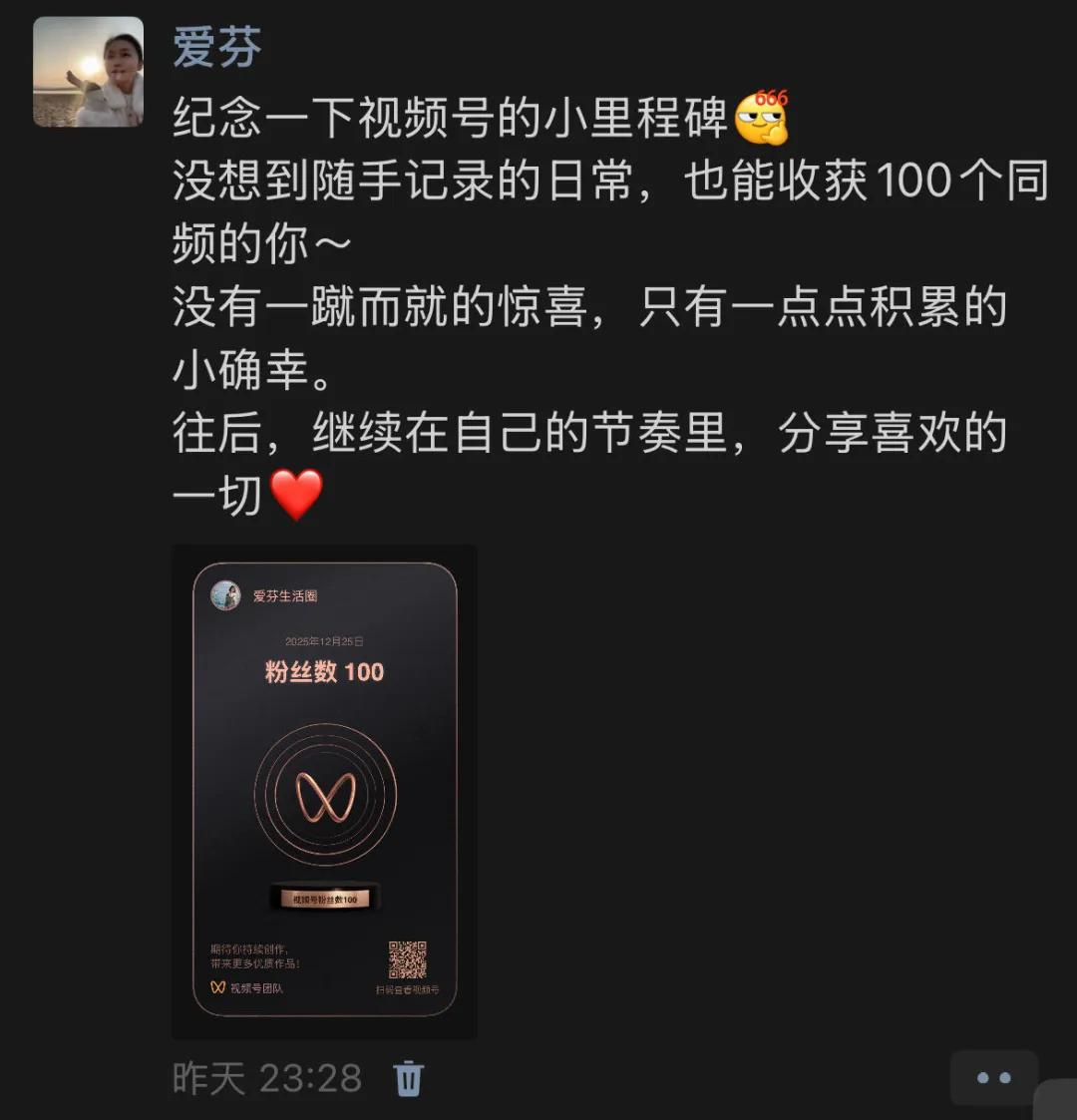 至于视频号,我不想做教育相关内容,只是记录生活。