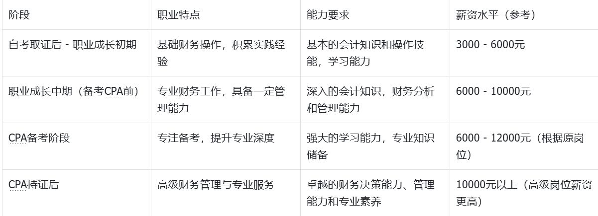 获取定制分析:将以上信息告知朗玛峰的咨询老师,获取一份为你初拟的从自考会计取证到CPA的职业路径规划方案。