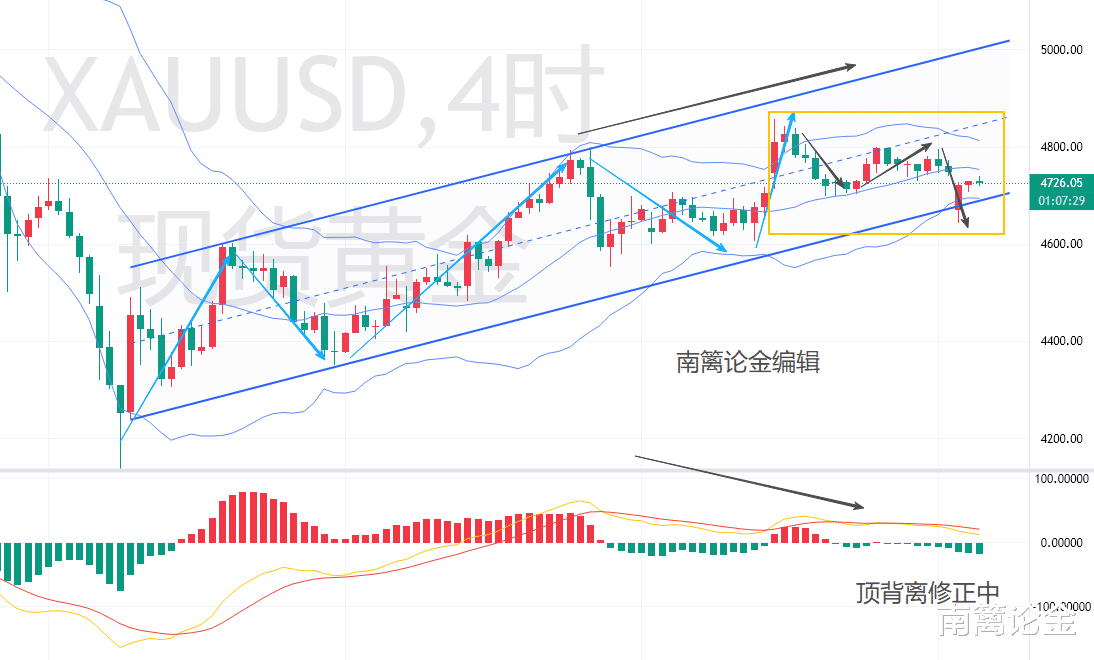 再看技术面,大周期上,周线收线还算乐观,至少实现了连阳。日线级别来看,金价在创出新高后,转入震荡偏空格局,上方4750及4800构成强阻力带,下方4600与4520则是关键支撑防线。当前金价正反复挣扎在布林带中轨一带,所以很简单,布林带中轨所在的4640一带,就成为了趋势上的分水岭。换句话说,一旦前低被跌破,行情将快速回落至4600这一前一轮起涨位进行测试。