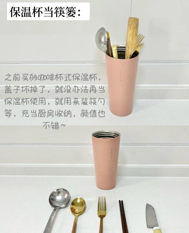 于是把保温杯简单刷一刷,放在厨房,这不就是一个筷子筒吗!