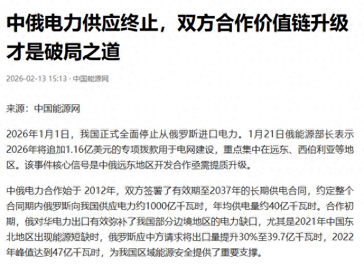 前不久,俄罗斯停止出口中国电力的新闻登上热搜。这则新闻在当时民间引起了不小的轰动,许多人都没有想到我国作为产电产能不断攀升的大国,竟然会在电力上依赖俄罗斯。