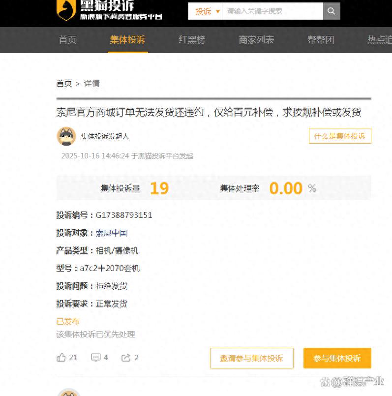 也正是稳定的价格和市场接受,让索尼在违约中充满了“硬气”。此次黑猫集体投诉,共涉及19件,可见用户对其无法履约发货的不满。