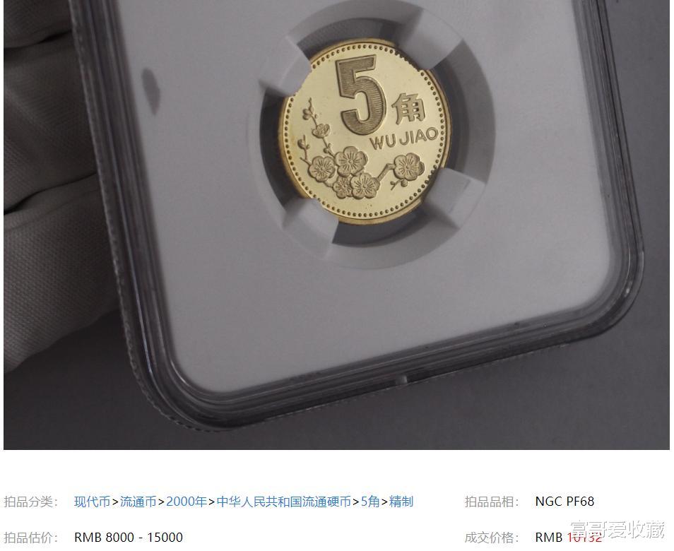 上面这枚就是2000年的梅花5角精制币,可以看到,估价就达到了1.5万。