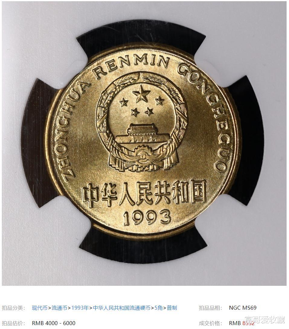 上面这枚NGC69分的93年梅花5角,估价就达到了6000。