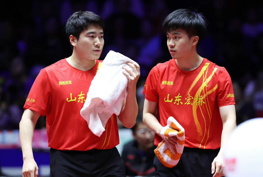 比赛开始后,第一盘梁靖崑/林昀儒3-0周恺/孙正(11-8、11-3、11-7),如果是周恺和许昕配合还有的一拼,换成孙正肯定是希望不大,梁靖崑/林昀儒这对组合非常稳定,他们基本上很少翻车。
