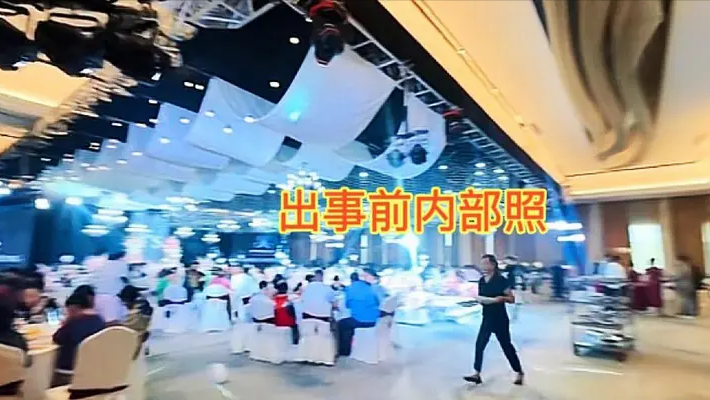 据悉,事发时一对新人正在楼下检查婚礼细节,躲过一劫。目前,事故原因还在进一步调查中。