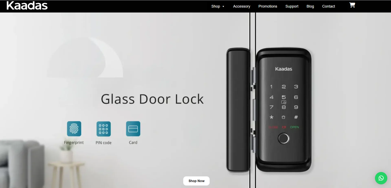 在独立站首页,Kaadas品牌设置了功能专区,直接为潜在用户展示了面部识别、指纹解锁、APP控制等核心卖点,能让潜在用户快速对产品的多种功能进行了解。