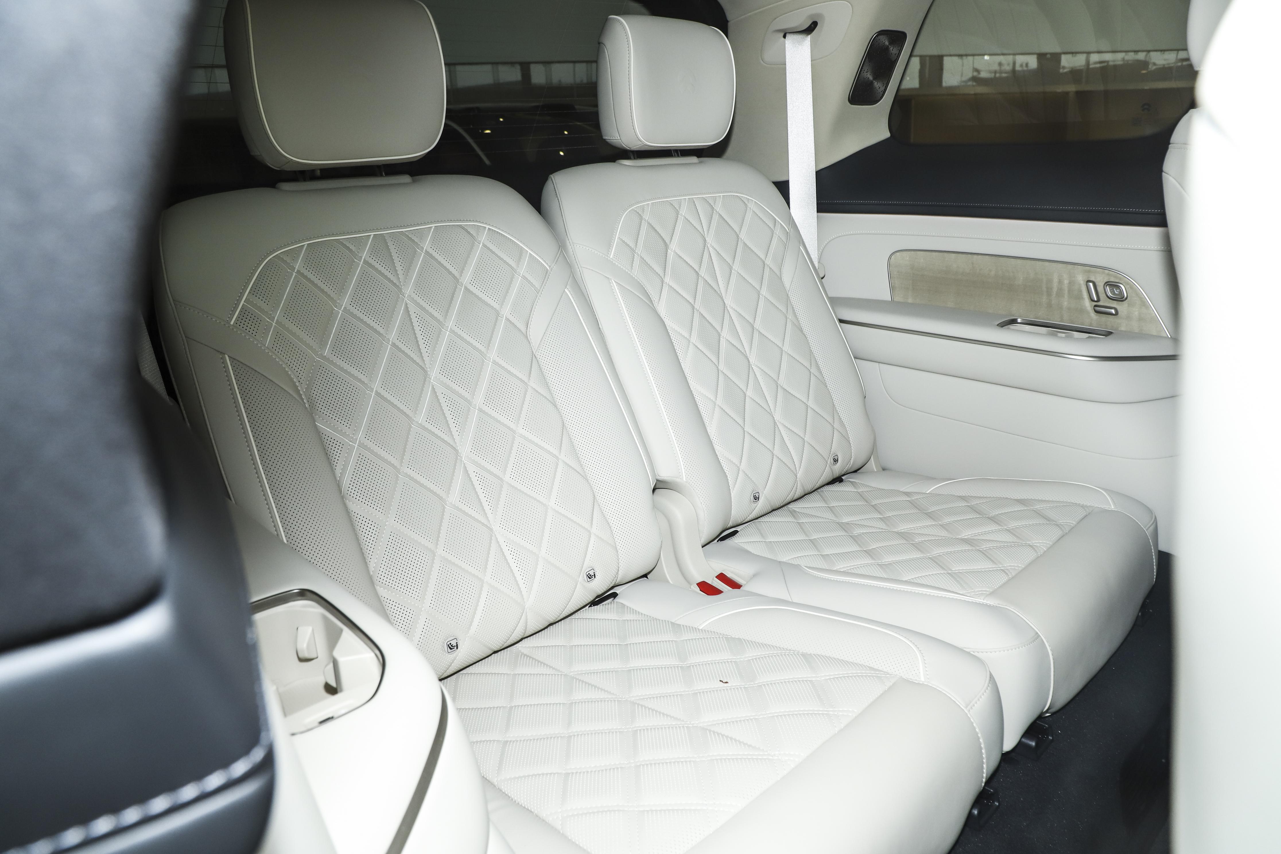 让我很惊喜的是,这么大一台车,前轮转向角达到 41 度,转弯半径只有 5.7 米左右。我在小区掉头、地库转弯、侧方停车时都很灵活,完全不觉得笨重,城市通勤便利性很高。车上三张零重力座椅,让前两排乘客都能享受到很放松的坐姿,长途自驾也不容易腰酸背痛。