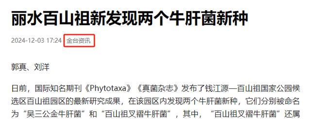 金台资讯《丽水百山祖新发现两个牛肝菌新种》,2024-12-3