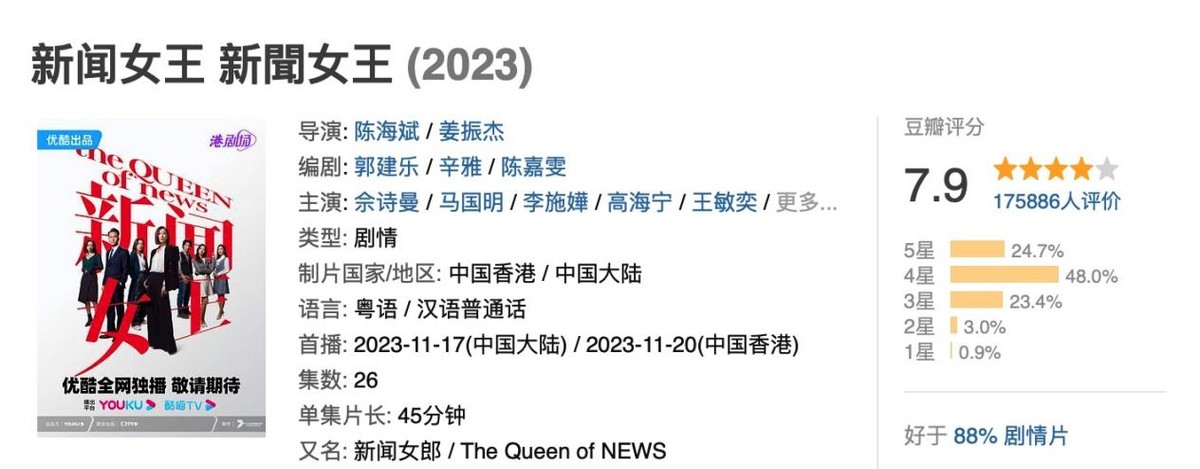 2023年底,《新闻女王》横空出世,一举点燃了沉寂多年的港剧市场。