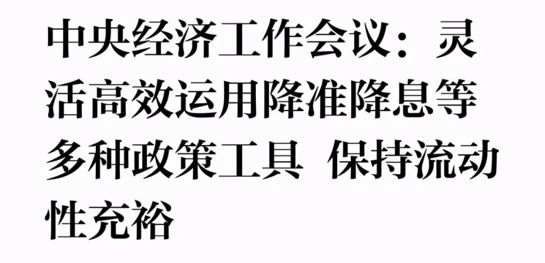 会议指出,要继续实施适度宽松的货币政策,把促进经济稳定增长、物价合理回升作为货币政策的重要考量,灵活高效运用降准降息等多种政策工具,保持流动性充裕。