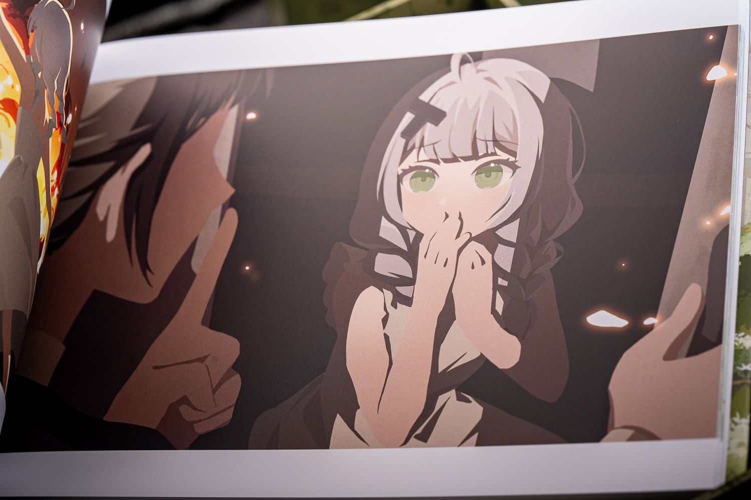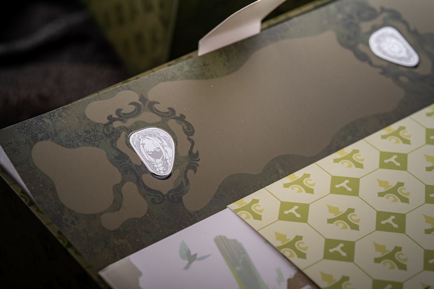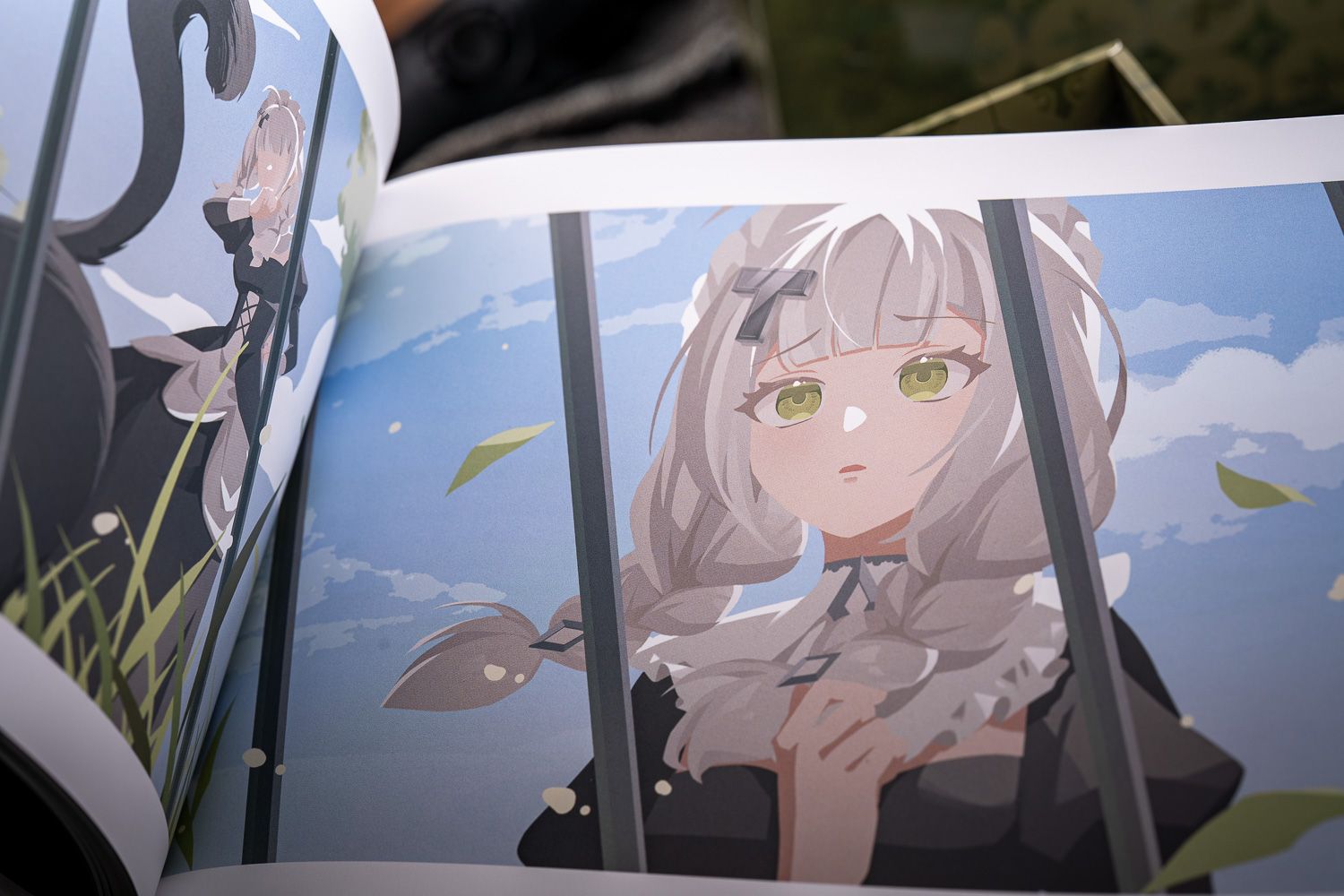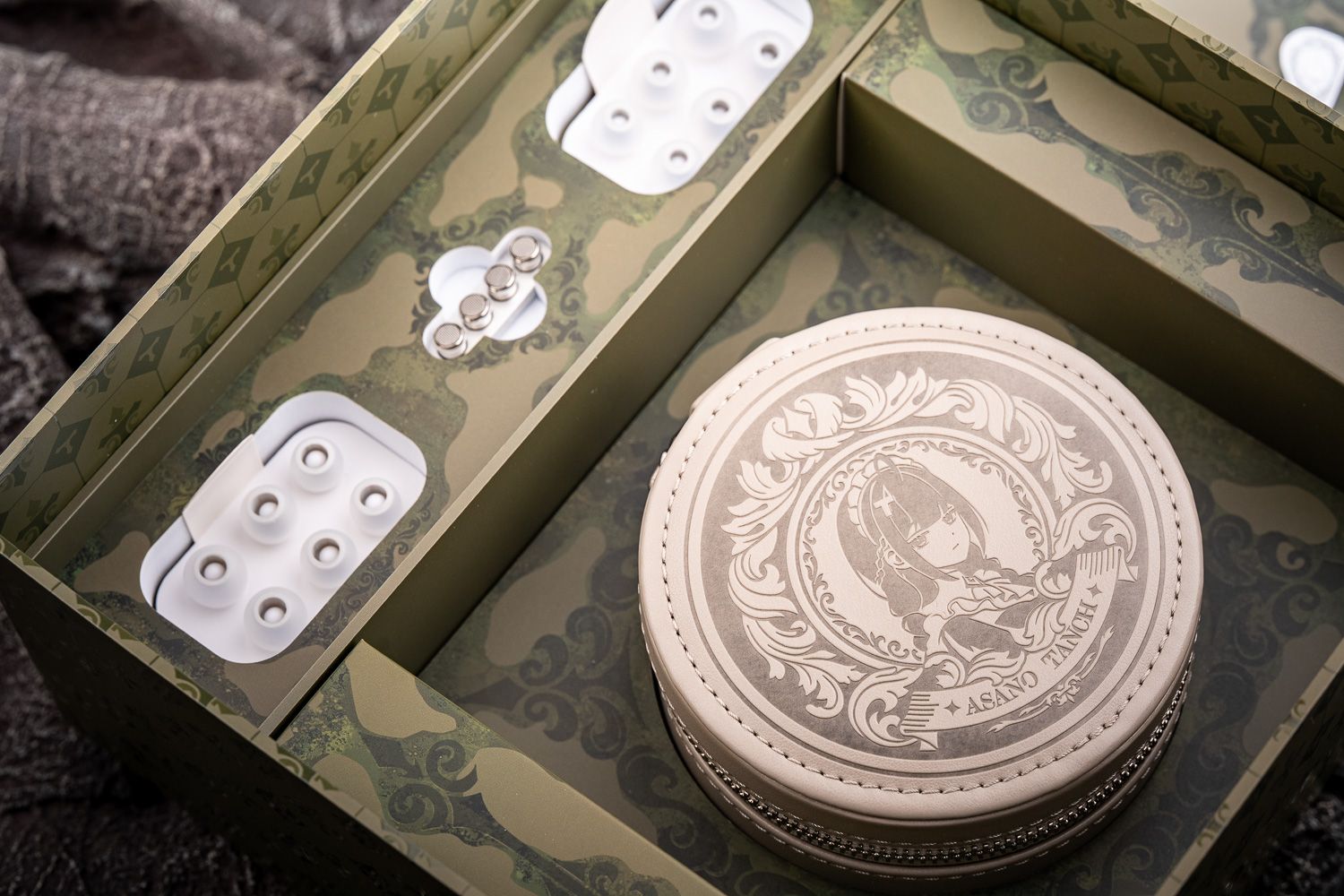 其实从包装封面就能看出这次的插画、乃至是腔体上浮雕出来的浅野天琪人物,都与以往的那种青春活泼可爱风格有所不同,会显得更加内敛深沉、心事重重的样子。而耳机的面板部分因为配色的缘故,体现不出浅野天琪的发色,我乍一看还以为是画了个富江在上面。掀开第一层固定腔体的板子以后,你会发现下面放置了一本制作与印刷非常精美的画册,由四位画师和艺术总监历经数月完成,里面讲述了失落庄园的起源故事、也算是第一次补足了浅野天琪的人设,剧情我就不剧透了,这个画册是一个连贯的故事、内容也非常丰富,未来不会单独发售,只有购买产品的用户才能持有,画工、剧情、分镜均为一流,而且在不配文字的基础上完成剧情设计更考验整体的创作团队的水平。