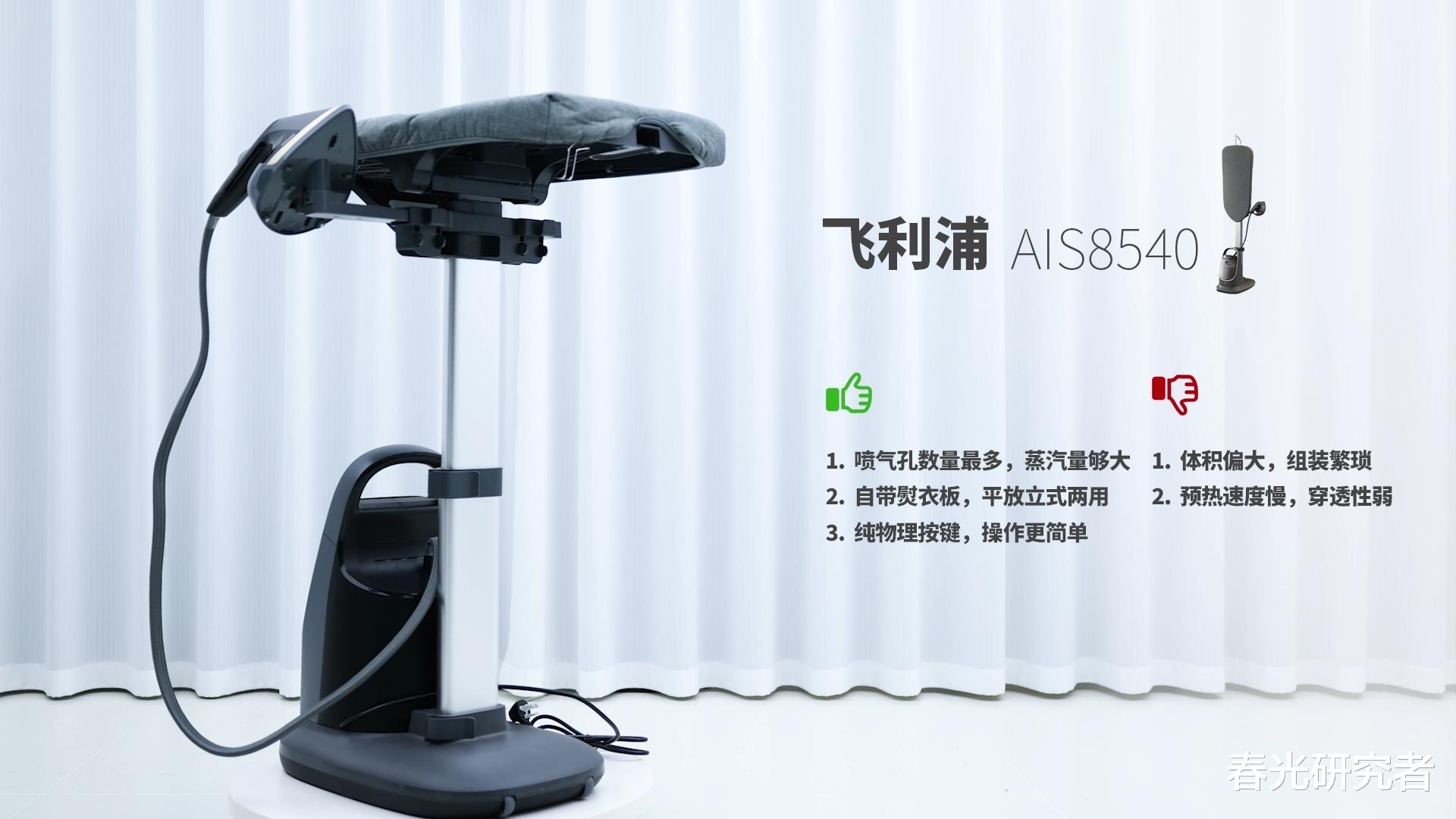 最后是飞利浦,这是一款立式挂烫机,它的蒸汽量相当大,但因较弱的压强,面对厚衣物时需要多熨几回,而且它没有对应的熨衣档位,非常考验使用者的手法,对新手不是很友好。