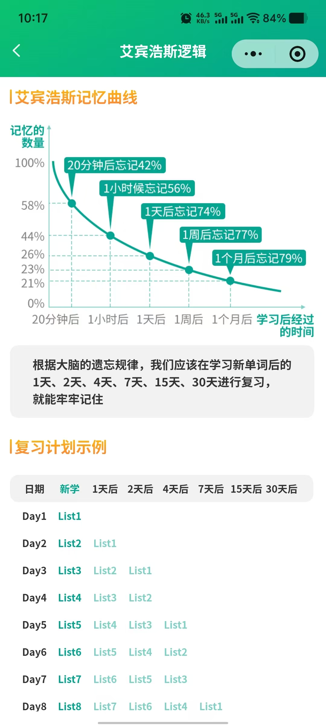 1. 艾宾浩斯遗忘曲线复习法——唯一的科学依据
