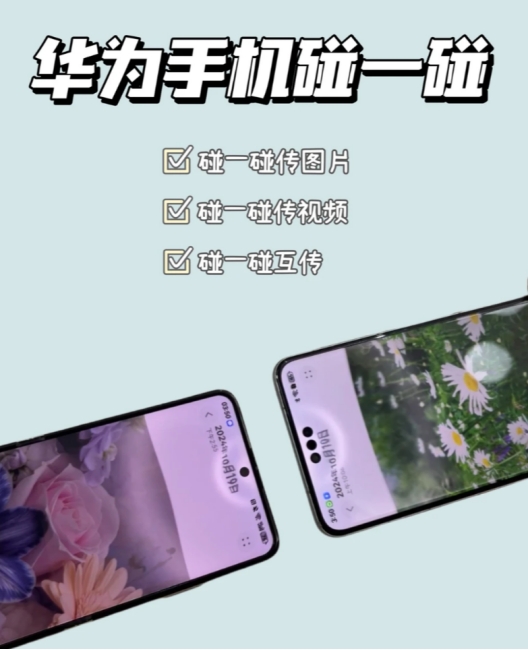 分享同样高效。拍完照片想传给亲友?传统方式要打开聊天窗口、选图、发送,步骤繁琐还容易打断氛围。而华为Mate 70 Pro+ 的碰一碰分享功能,让传递变得像递东西一样简单:两台华为手机顶部轻轻一碰,照片、视频甚至文件就能直接“推”过去,一碰即发,自然又高效。