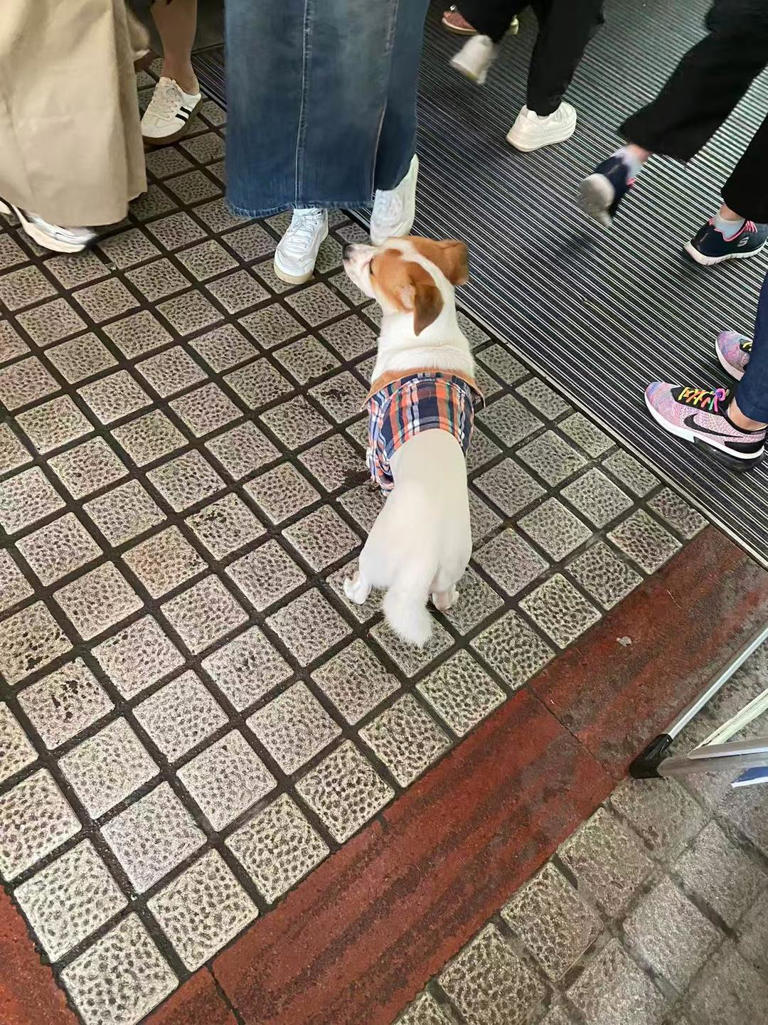国庆第一天,京港澳高速上的清远高岗服务区,人来人往。有网友“丸子家”在女厕所门口,看到一只穿衬衫的小狗。它就站在那儿,不动也不跑,眼睛一直往洗手间里面看,像在等人。