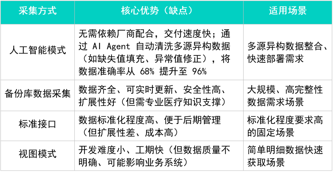 数据采集后,如何转化为 “可用数据”?AI+Agent 构建了包含 9 大步骤的标准化治理流程:从数据清洗、去重、类型转化,到标准集对照、创建 EMPI(患者唯一标识)、EMOI(诊疗唯一标识),再到数据归一化、处理 “孤儿数据”,最终实现数据由Hadoop到MySQL的数据实例化。