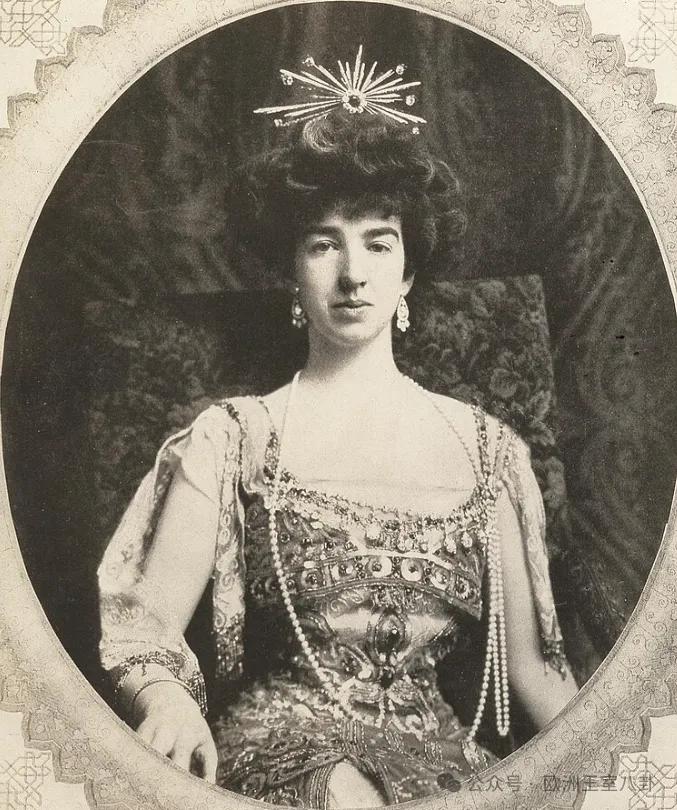 据说她经常佩戴文章开头的王冠参加各种宴会,从留下的唯一一张照片看,除了王冠,大冰糖吊坠也看着很厉害