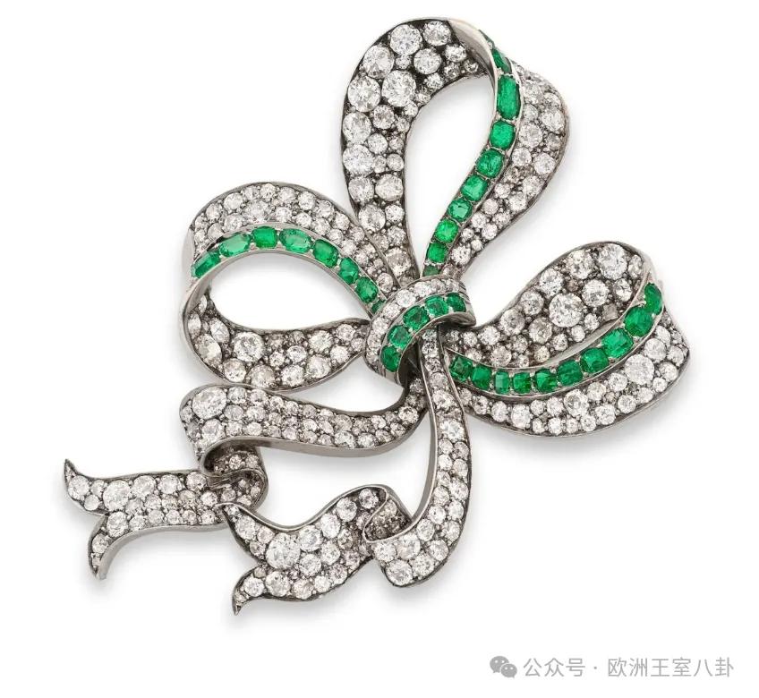 她的后人最近把开头王冠的一部分,即一枚叶子胸针拿到拍卖会。当年格拉迪斯的闺女们应该以这种方式瓜掉了王冠