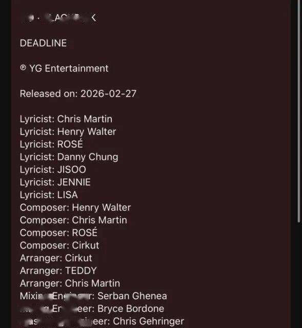 2月27日,BLACKPINK原定发布全新完整专辑《GO》。然而,就在发布前夕,专辑的全部音源及详细的曲目制作名单,竟被“意外”上传至组合的官方YouTube频道。尽管相关内容很快被删除,但互联网的记忆已然被点燃。主打歌《GO》的歌词部分显示有成员参与创作,这本是值得粉丝欢呼的亮点,但随后曝光的其他信息,却将一场本该是音乐盛宴的发布,推向了舆论的漩涡。