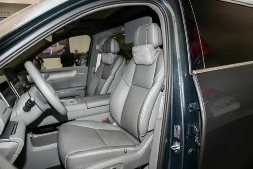 坐进车内,内饰的用料与布局是最直观的感受,零跑 D19 采用全新的座舱设计语言,提供云雾灰、丹雅棕、霁雨灰三种配色,车内软包面积达到 25 平方米,中控台、车门板、扶手箱等常接触的位置,都用了软性材质包裹,部分版本搭配半苯胺真皮座椅,触感温润细腻,没有廉价的塑料感,按压下去的回弹力度均匀,缝线工艺也比较规整,没有明显线头。座舱核心是五屏交互系统,包括 10.25 英寸液晶仪表、17.3 英寸中控屏、60 英寸 AR-HUD、21.4 英寸后排娱乐屏,还有 6 英寸的后排控制屏,屏幕分辨率与色彩表现都不错,操作时的流畅度后续会结合芯片算力细说。座椅是家用车的核心,D19 提供 6 座与 7 座两种布局,6 座版为 2+2+2 布局,二排是独立零重力座椅,支持电动调节、腿托、加热、通风、按摩功能,一键躺平后,腿部与腰部的支撑性很到位,长途乘坐不易疲劳;7 座版为 2+3+2 布局,第二排支持前后滑动,第三排空间在同级别车型里表现突出,身高 175cm 的乘客乘坐,腿部还有两拳左右余量,头部也不会顶头,日常载着老人孩子出行,第三排不再是 “应急座椅”,实用性大幅提升。